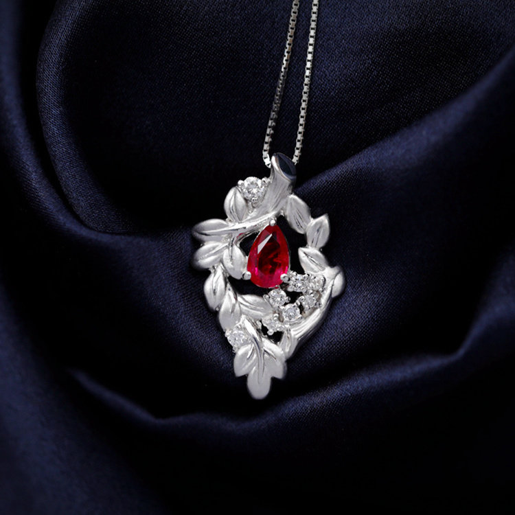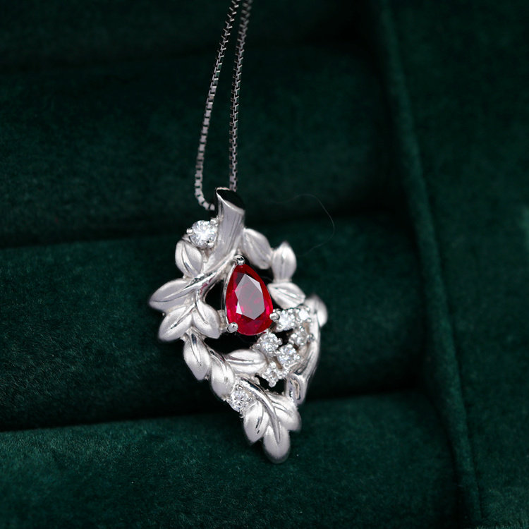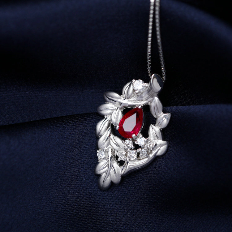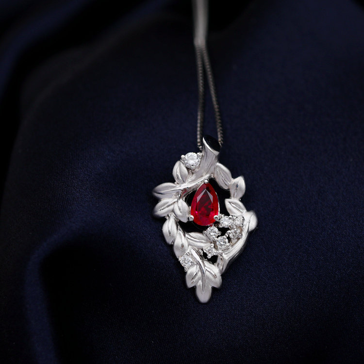 Ювелирное украшение, рубиновое бриллиантовое платиновое ожерелье, 0.82 карат
