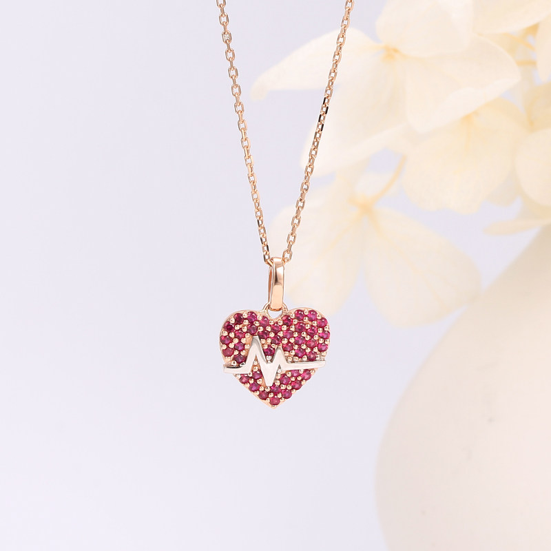 Ювелирное украшение, рубиновая подвеска в форме сердца, золото 750 пробы