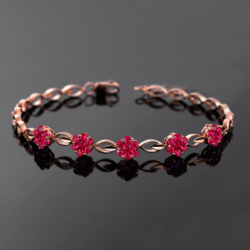 廷亮 Ювелирное украшение, браслет, натуральная рубиновая инкрустация камня из Мьянмы из натурального камня, золото 750 пробы, 1.6 карат