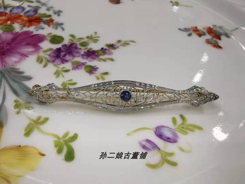 Платиновое ювелирное украшение, инкрустация камня из нефрита, сапфировая брошь, 14 карат
