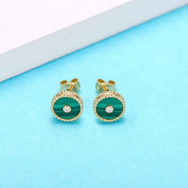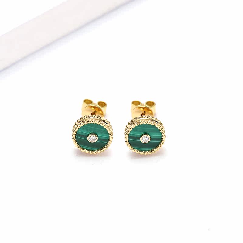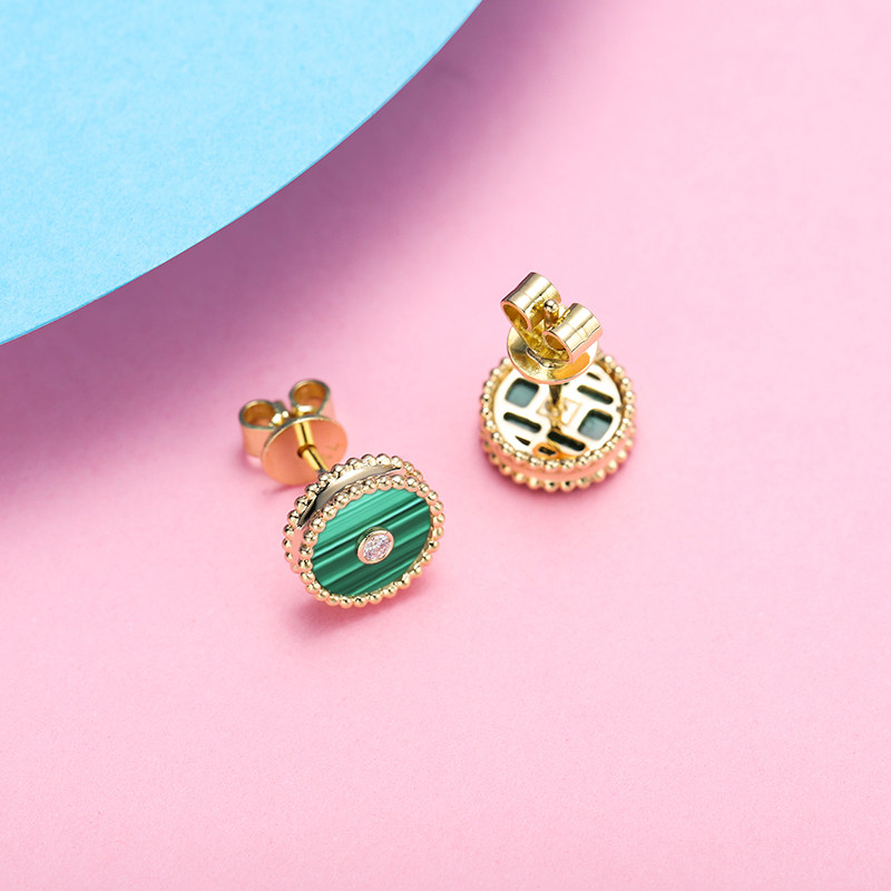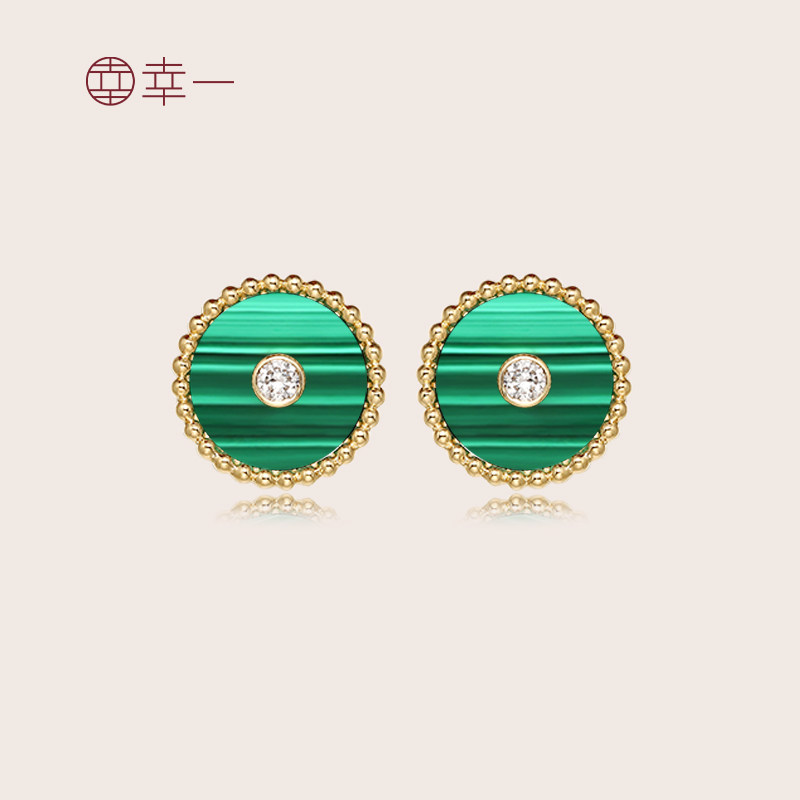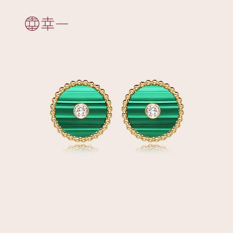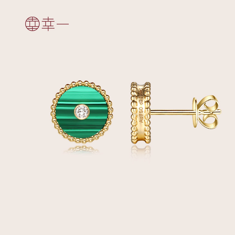 幸一珠宝 Защитный амулет, пряжка, серьги малахит, золото 750 пробы