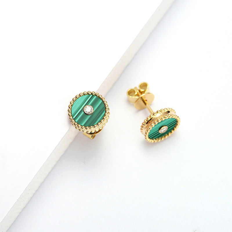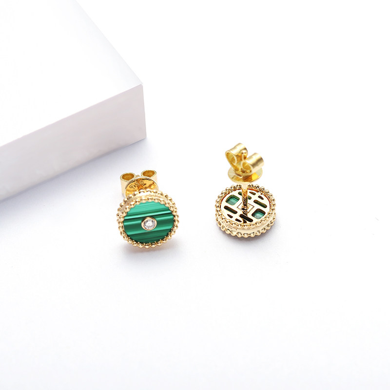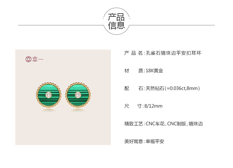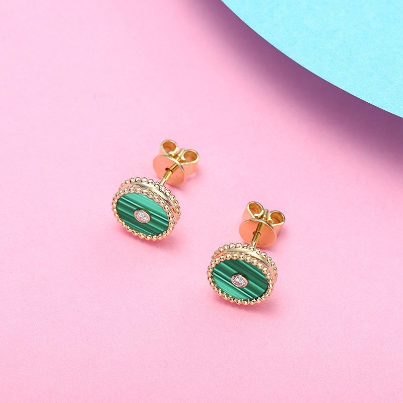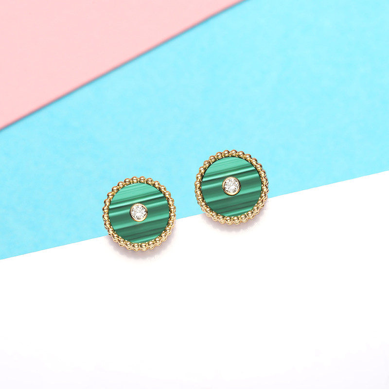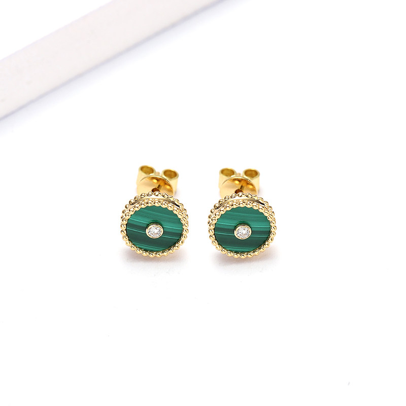 幸一珠宝 Защитный амулет, пряжка, серьги малахит, золото 750 пробы