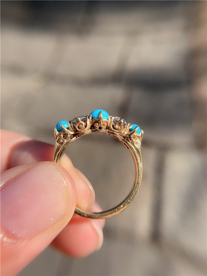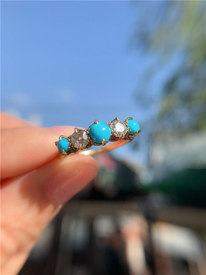 В течение викторианского периода британские 18 инкрустированных натуральных синих фарфоровых сосновых камней натуральные бриллианты инкрустированы