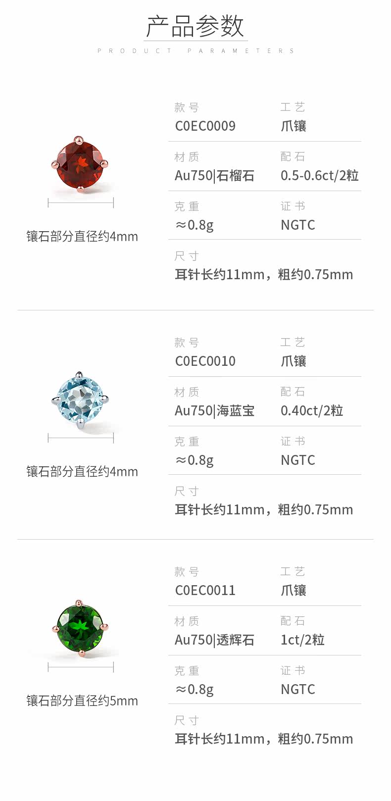 Золотые сапфировые серьги из граната, 18 карат, розовое золото, с драгоценным камнем