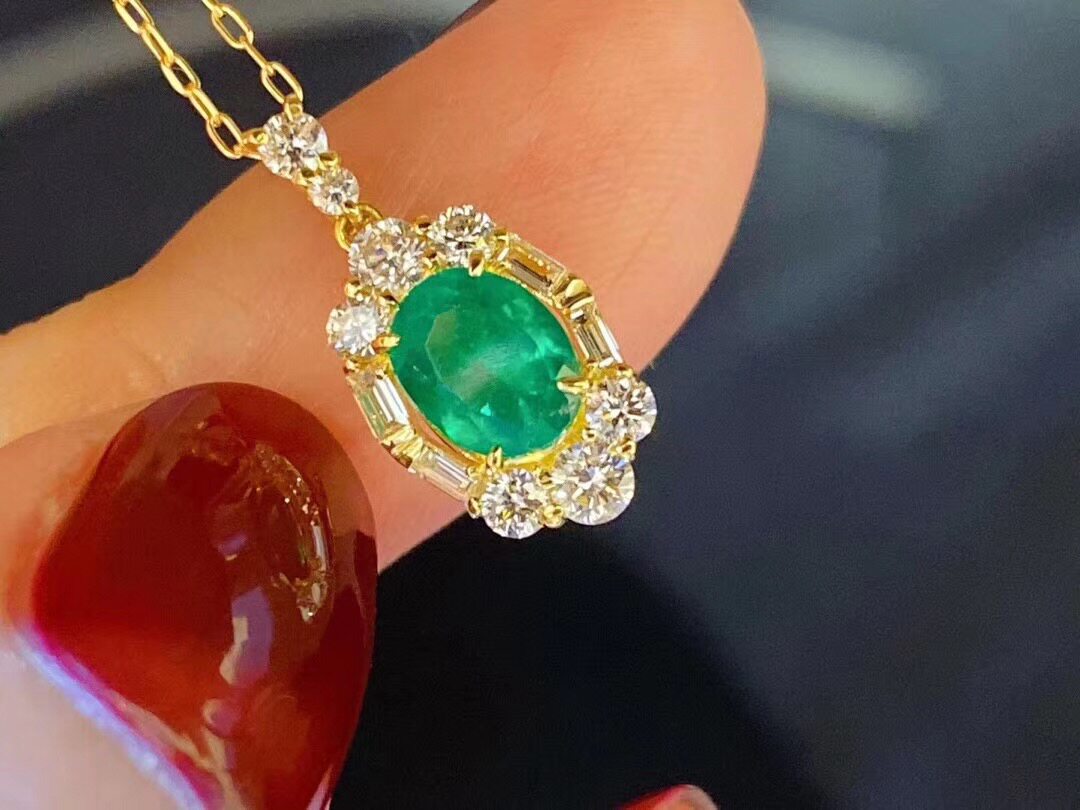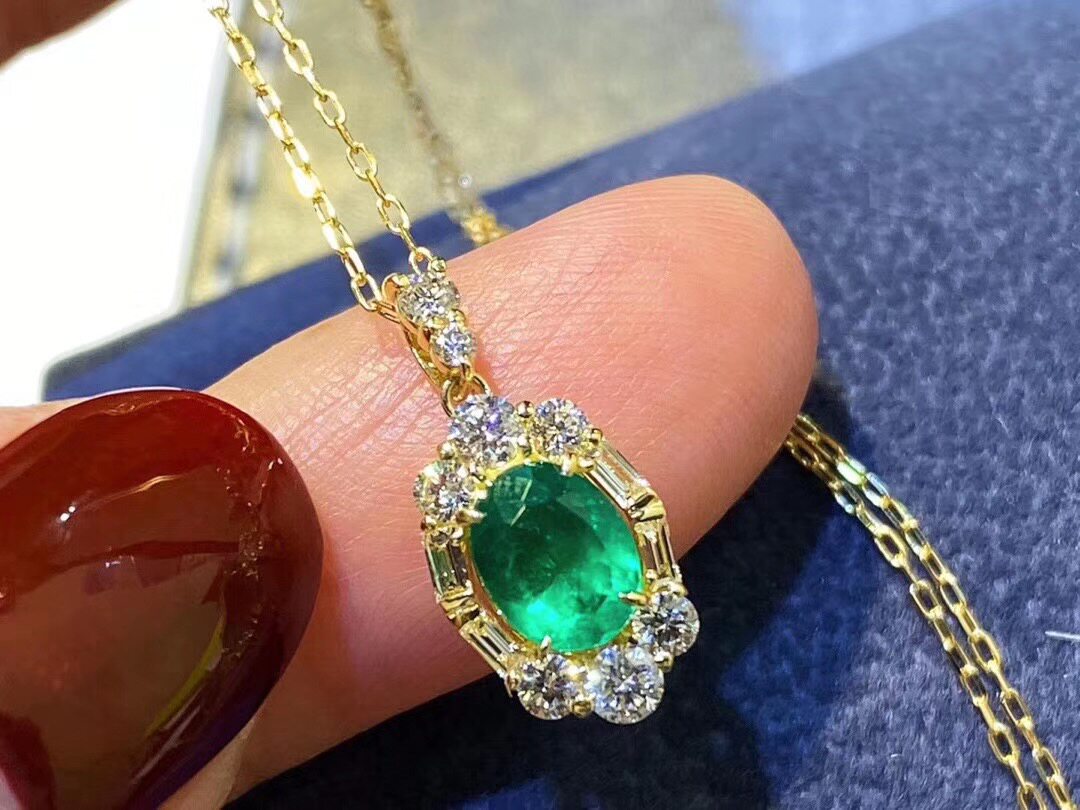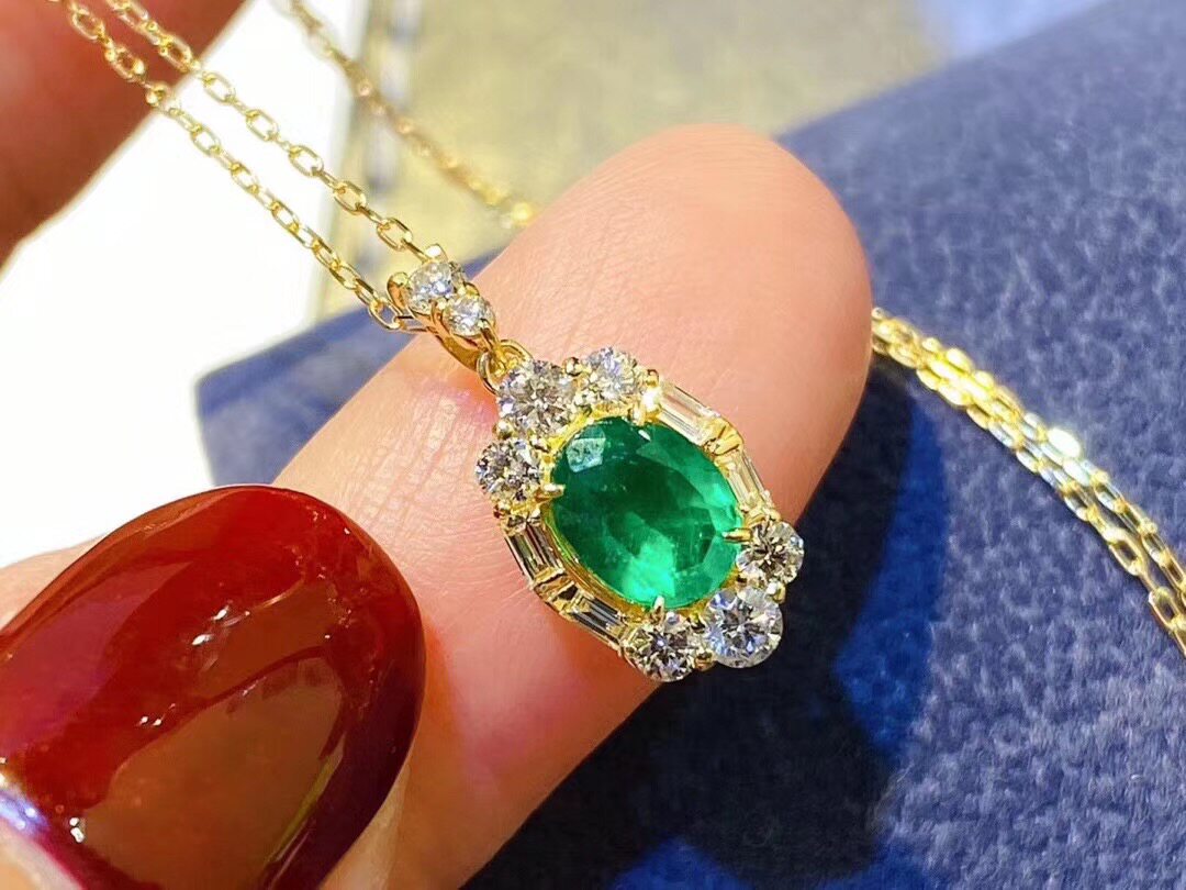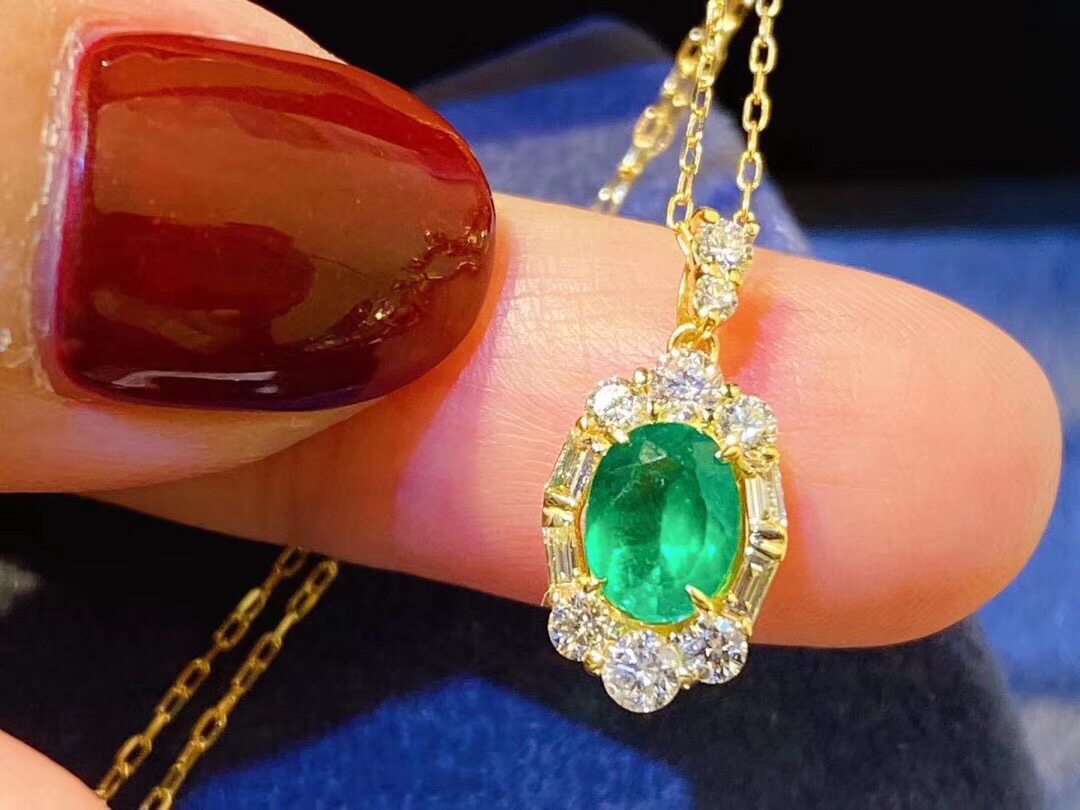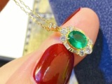 Натуральная подвеска изумруд, цепочка до ключиц, серебро 925 пробы, 7mm