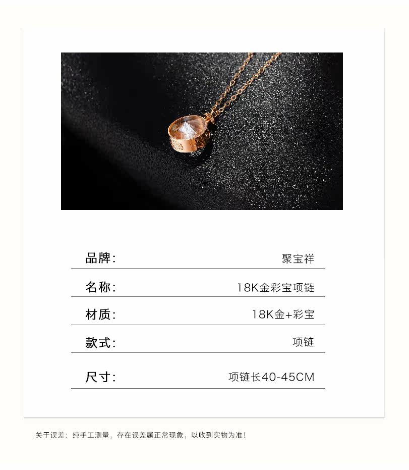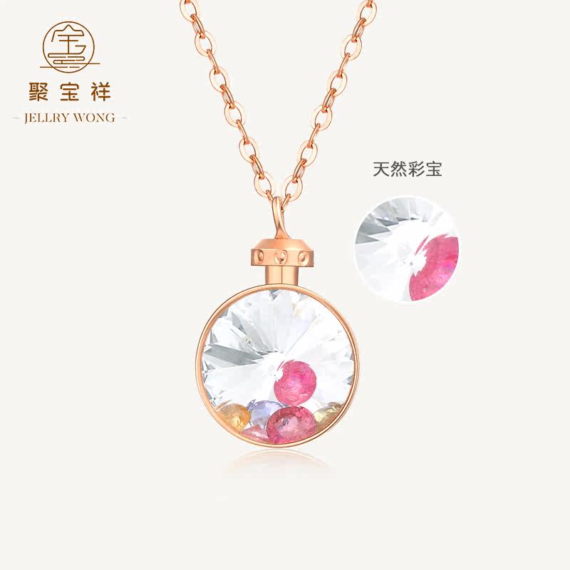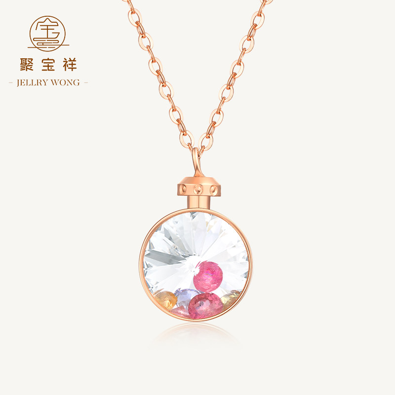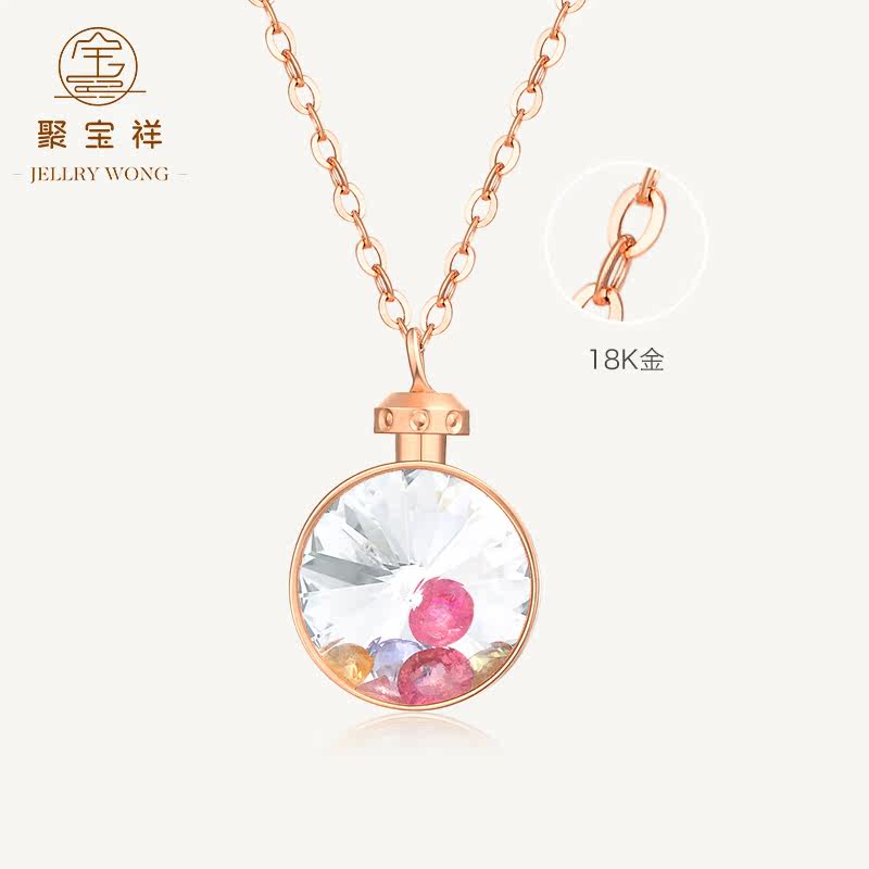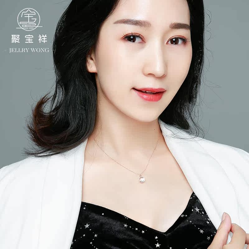 聚宝祥 Брендовое ожерелье, золотая милая японская цепочка, подвеска, золото 18 карат, 2019, розовое золото