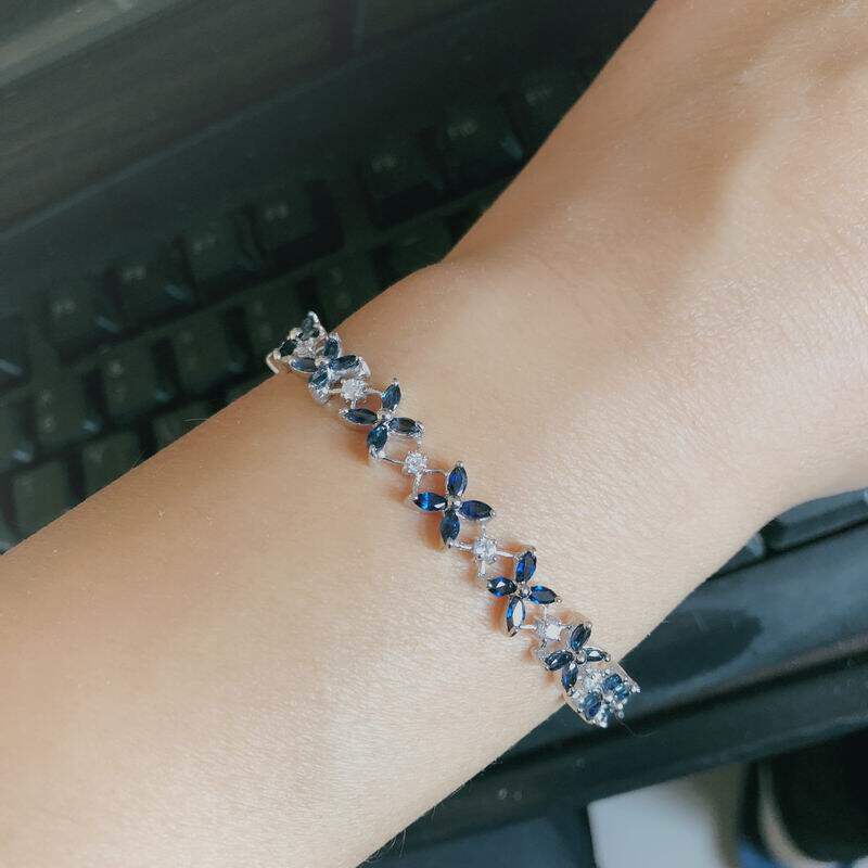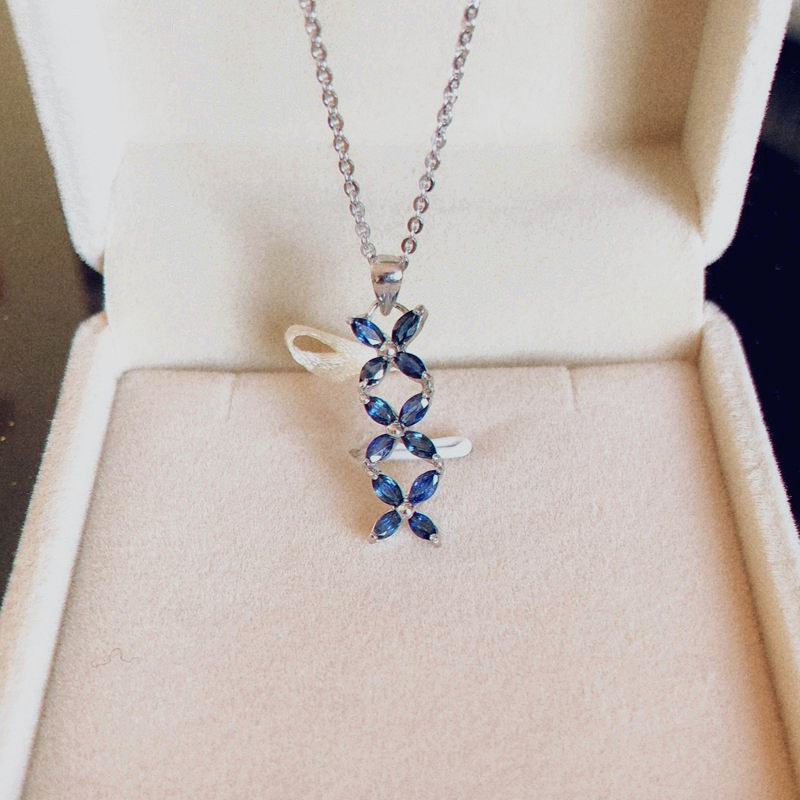 Натуральный сапфировый браслет из натурального камня, подвеска, ожерелье, комплект, в цветочек, серебро 925 пробы