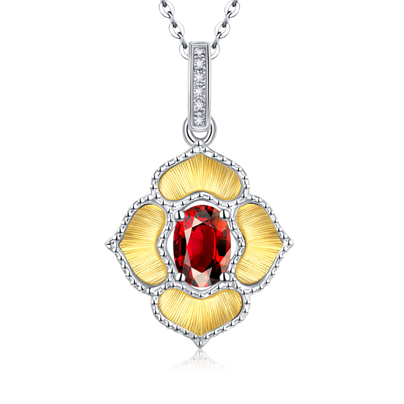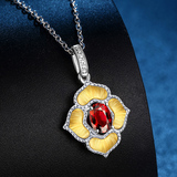Натуральное ювелирное украшение, рубиновая бриллиантовая двухцветная подвеска, золото 750 пробы, четырехлистный клевер