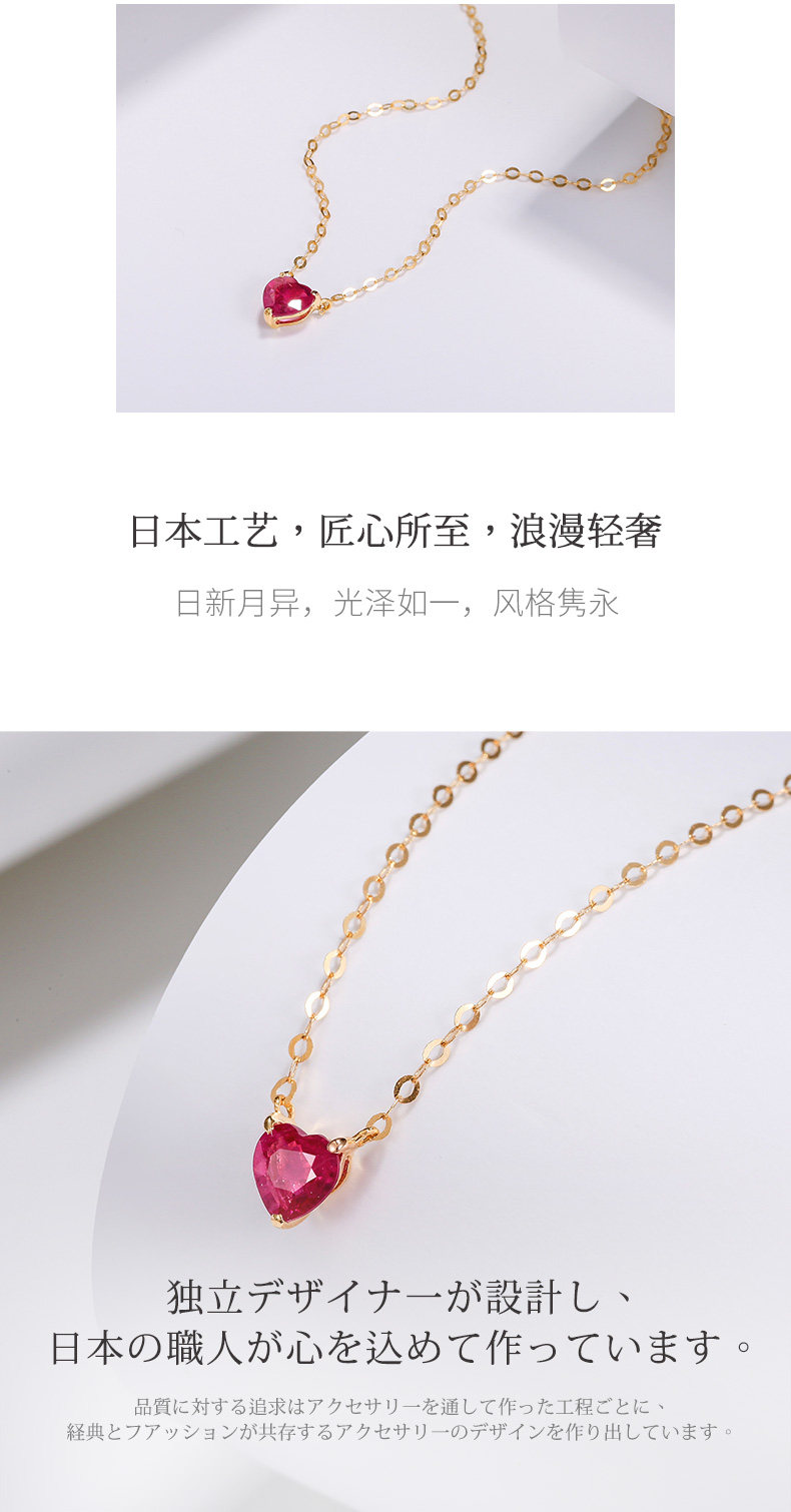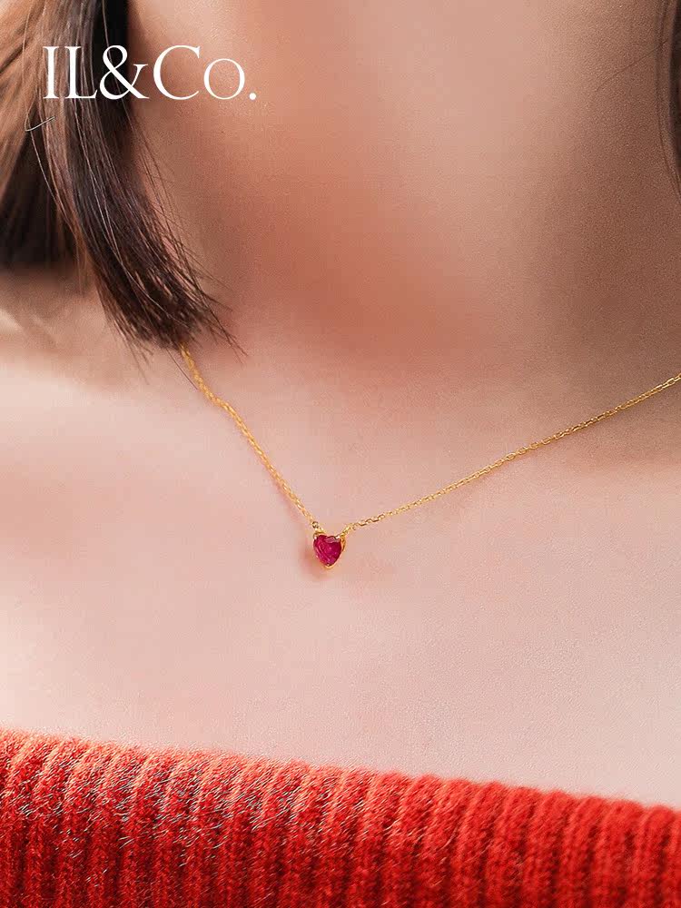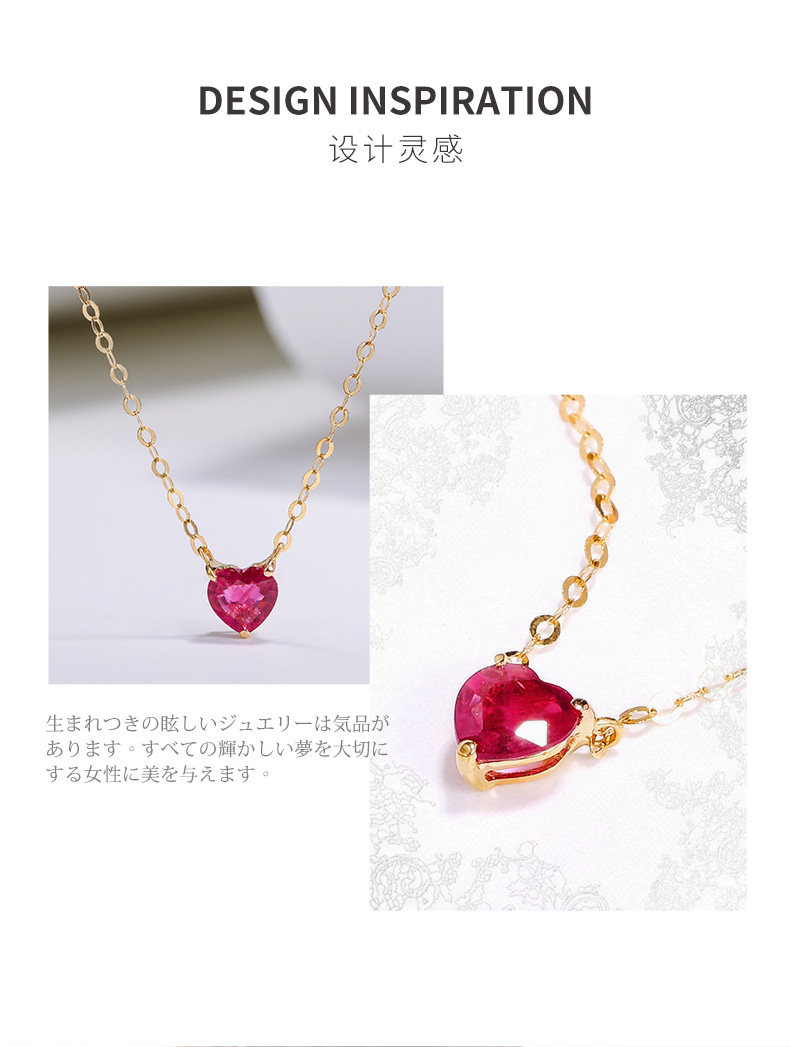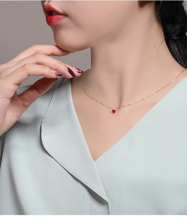 Рубиновая подвеска, натуральная цепочка до ключиц, золото 750 пробы, легкий роскошный стиль