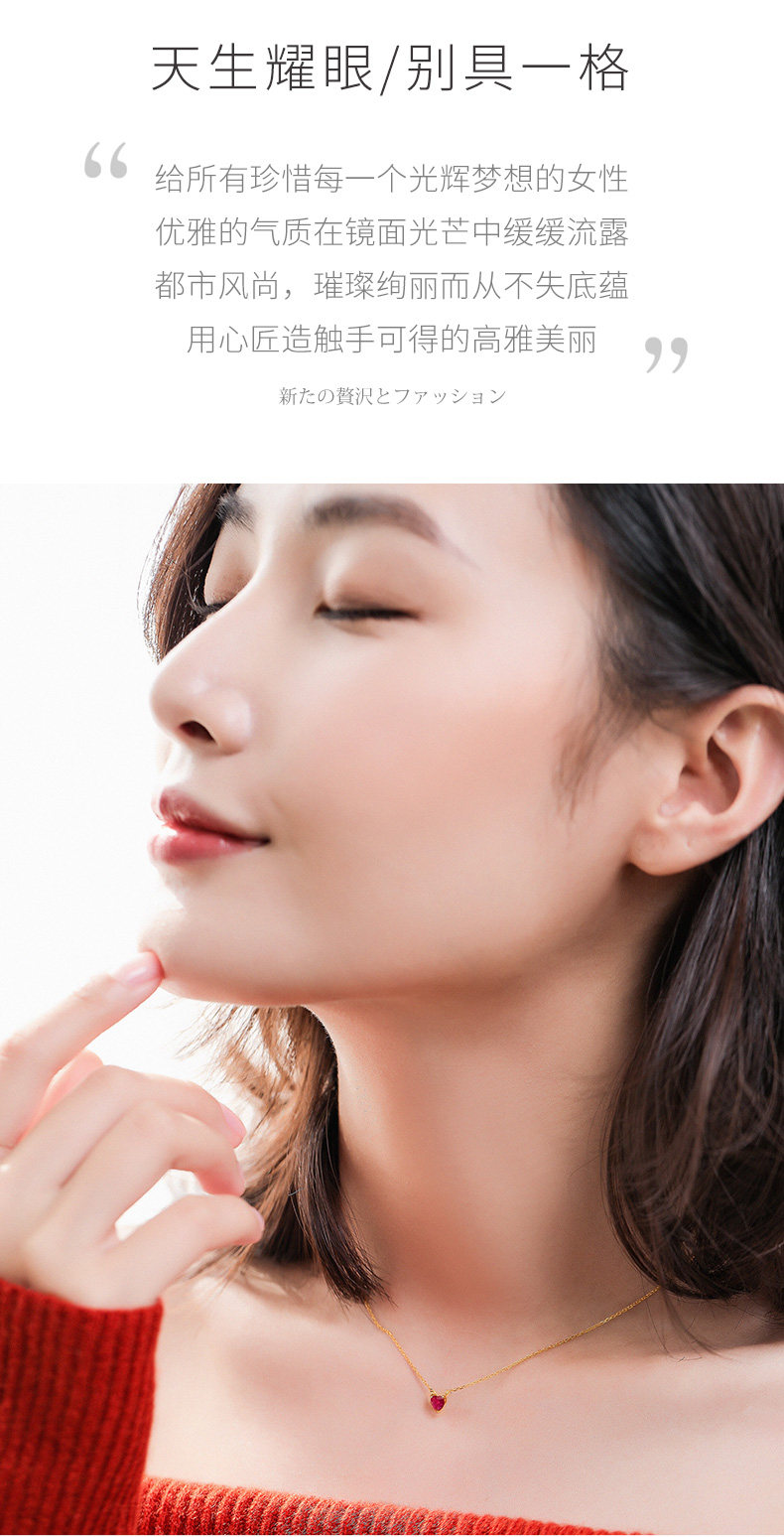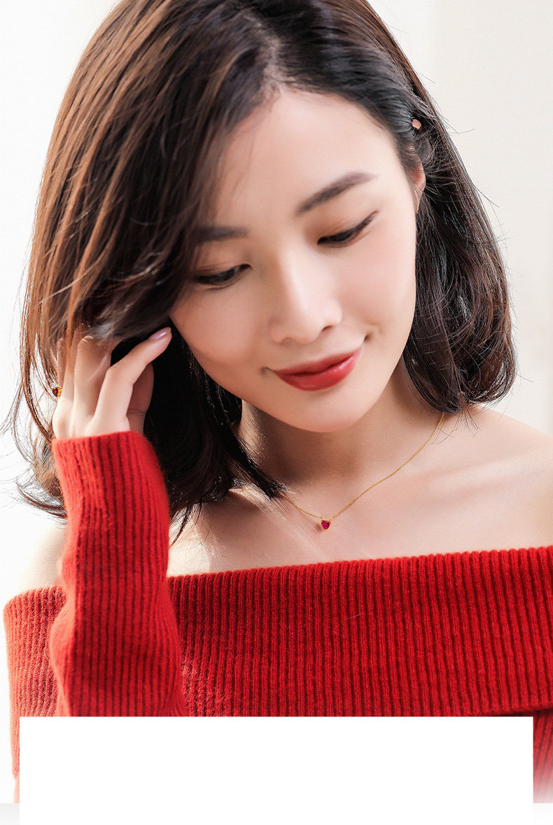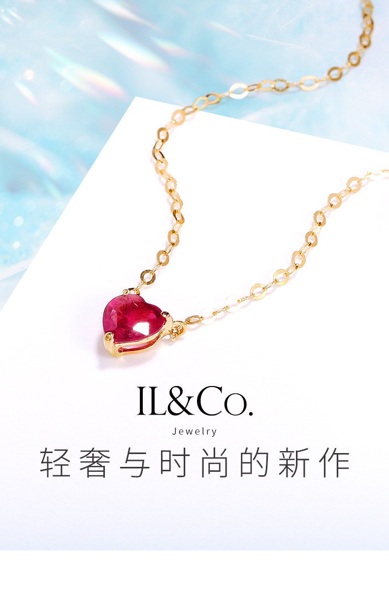 Рубиновая подвеска, натуральная цепочка до ключиц, золото 750 пробы, легкий роскошный стиль