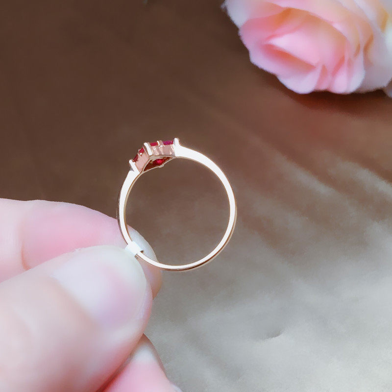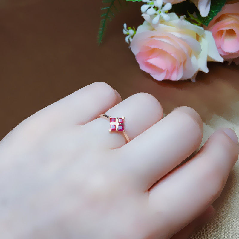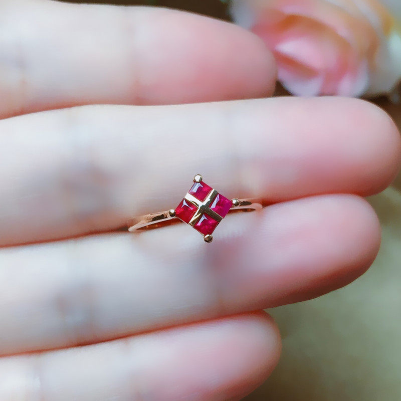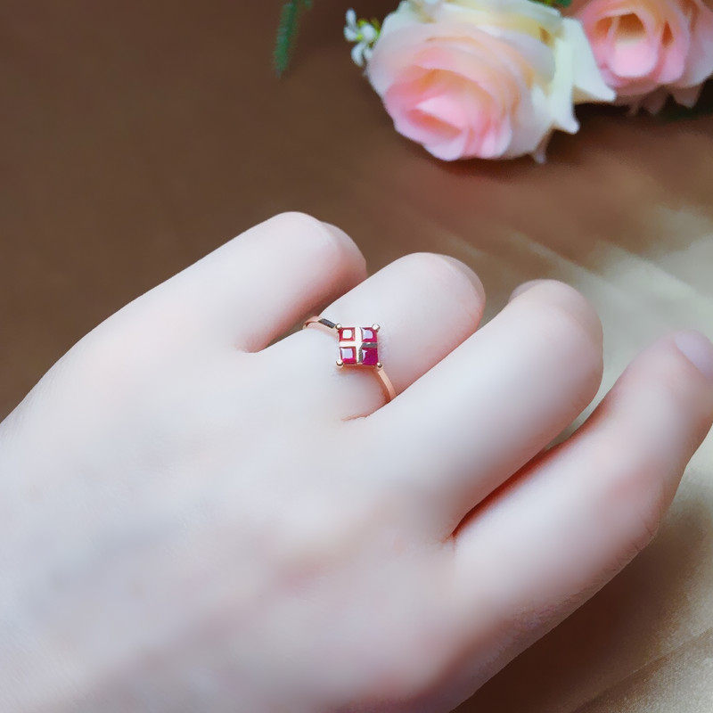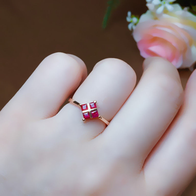 Натуральное рубиновое кольцо с камнем, квадратная золотая свежая модная инкрустация камня, женский стиль, золото 750 пробы, розовое золото