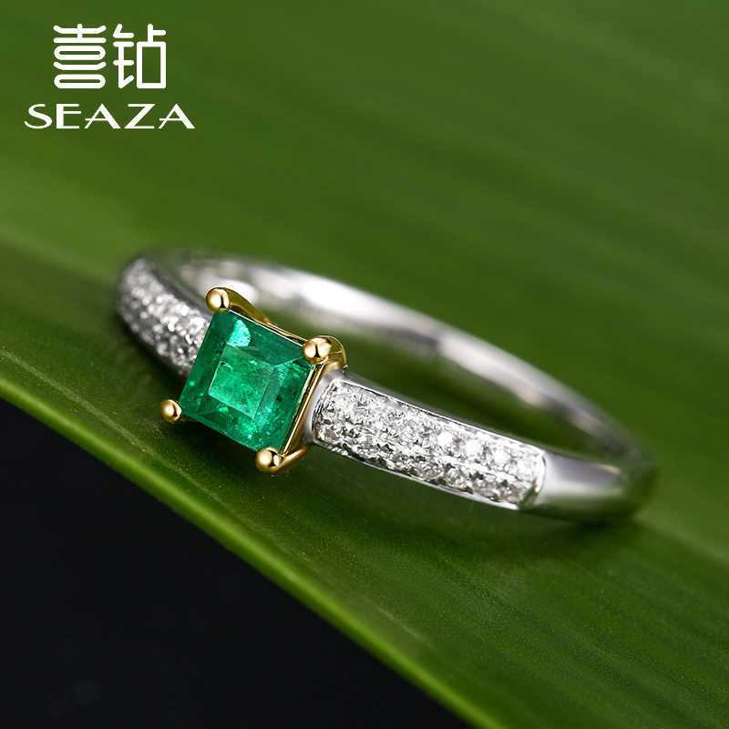 Двухцветное модное обручальное кольцо изумруд, кольцо с камнем, золото 18 карат