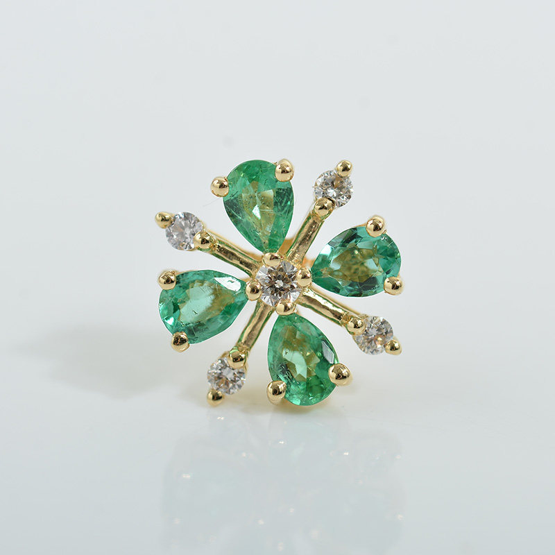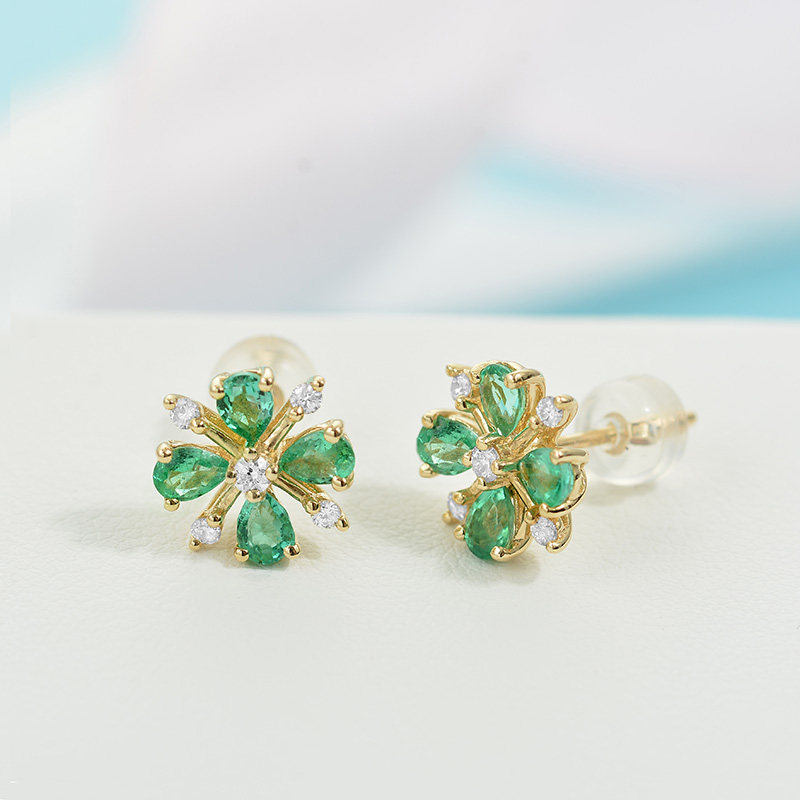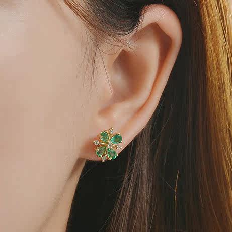 Ювелирное украшение, золотая бриллиантовая инкрустация камня изумруд, классические элегантные серьги, 18 карат, с драгоценным камнем, четырехлистный клевер