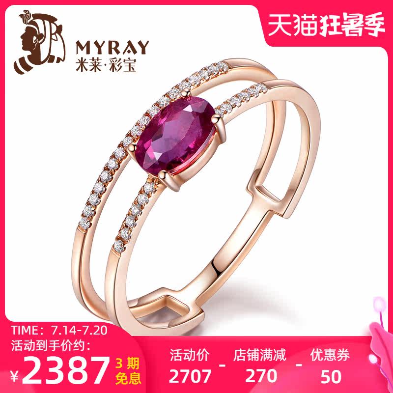 米莱 Ювелирное украшение, натуральное турмалиновое кольцо, 0.5 карат, золото 750 пробы, с драгоценным камнем
