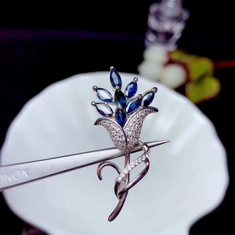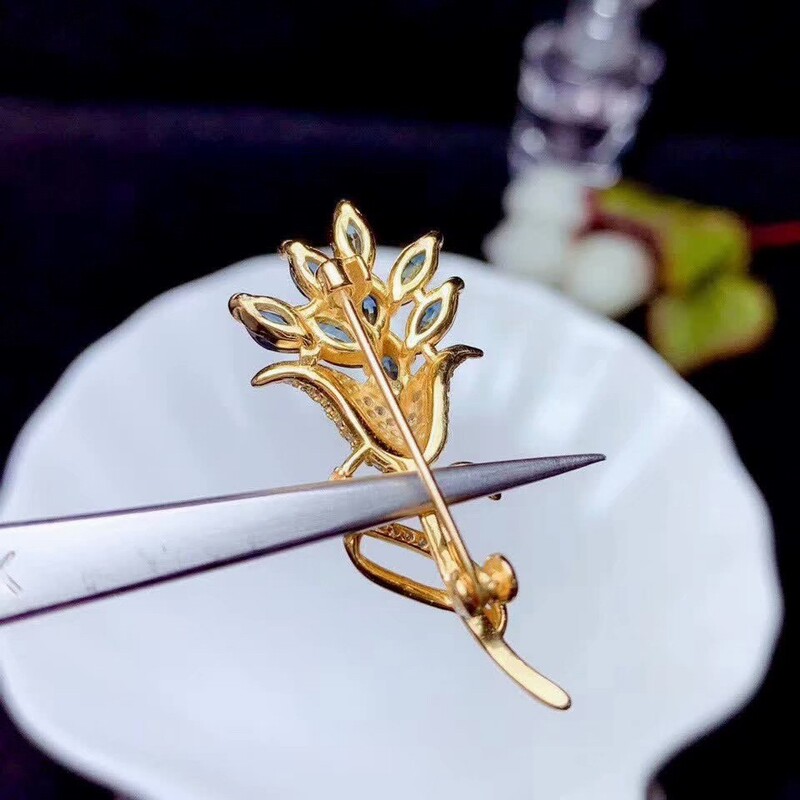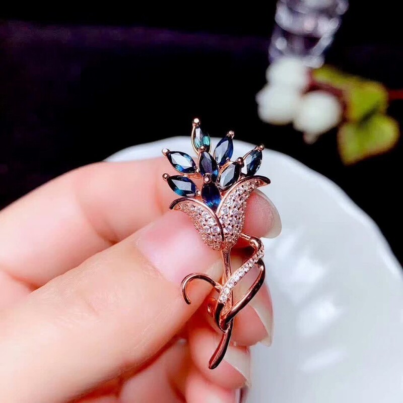 Сапфировая брошь из нефрита, платиновый золотой модный аксессуар на лацкан, в цветочек, серебро 925 пробы, розовое золото