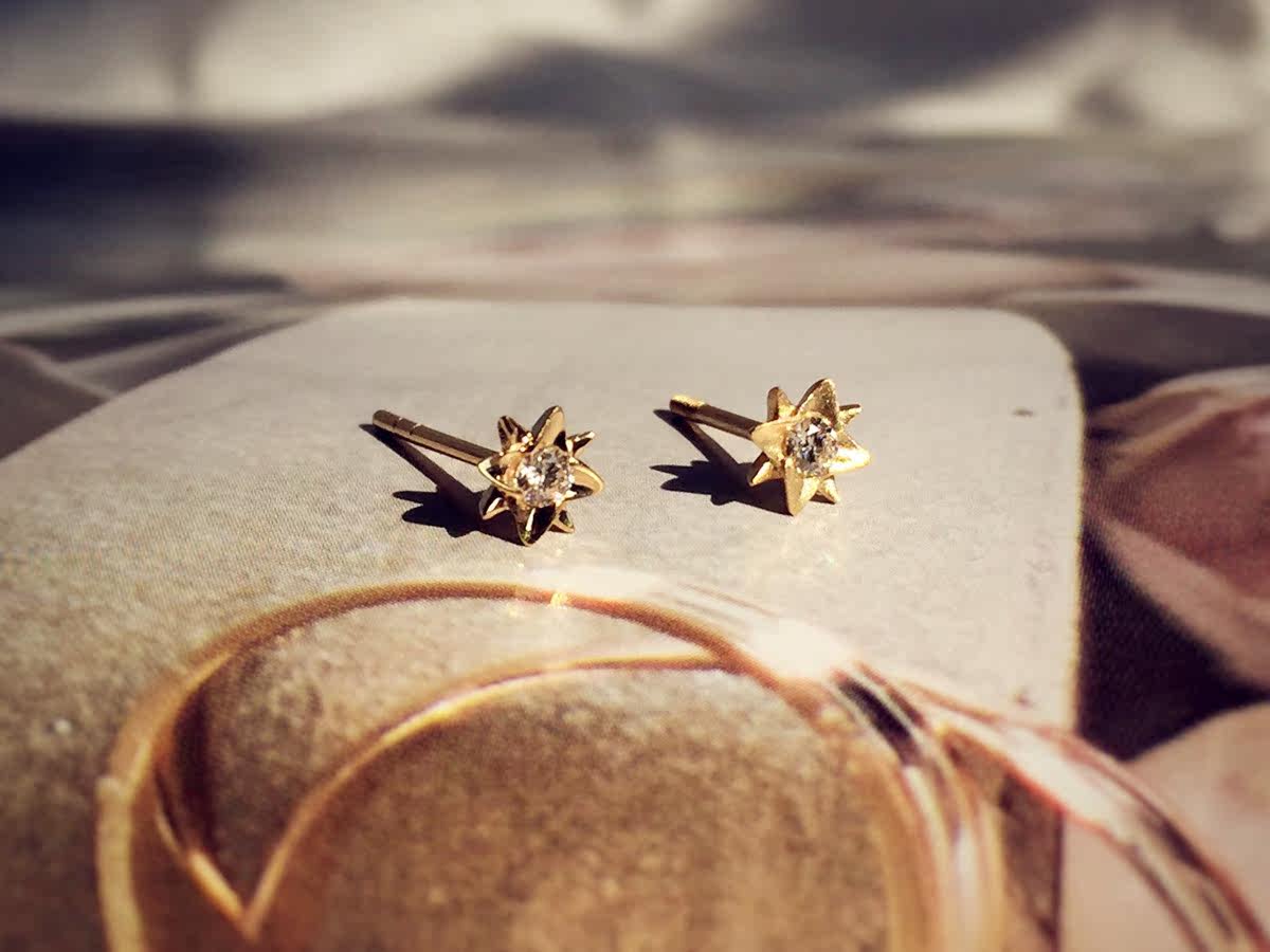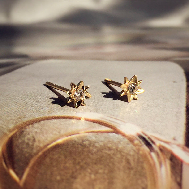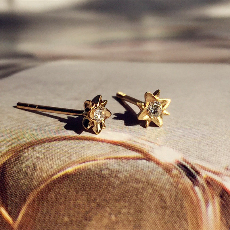 Японские натуральные бриллиантовые глянцевые матовые серьги, золото 750 пробы