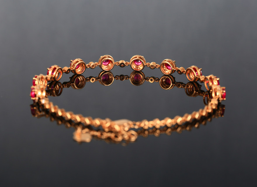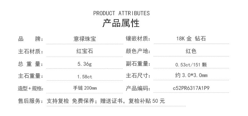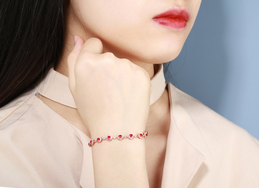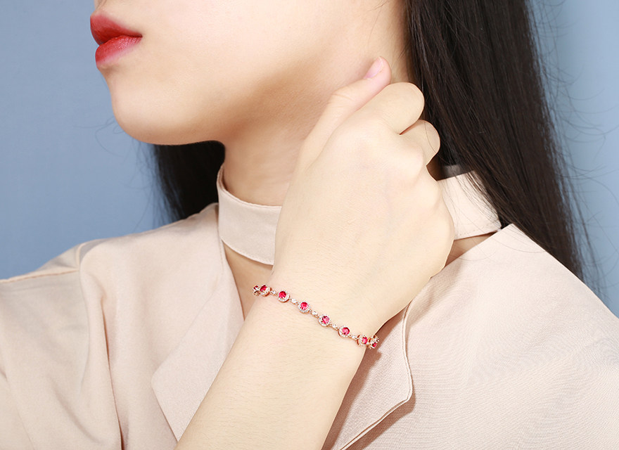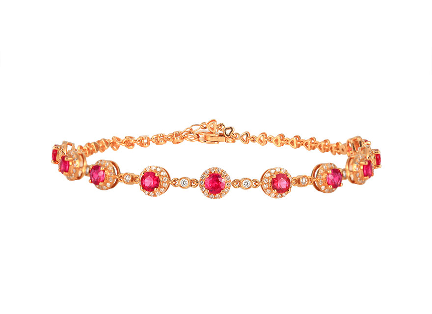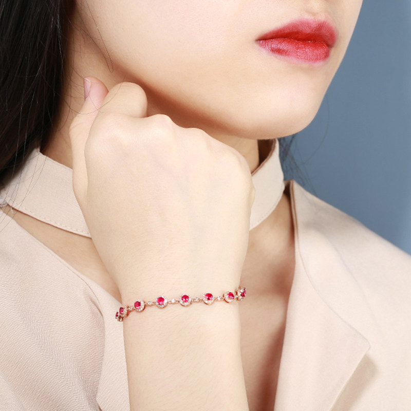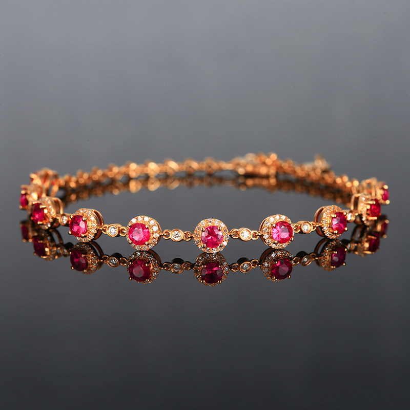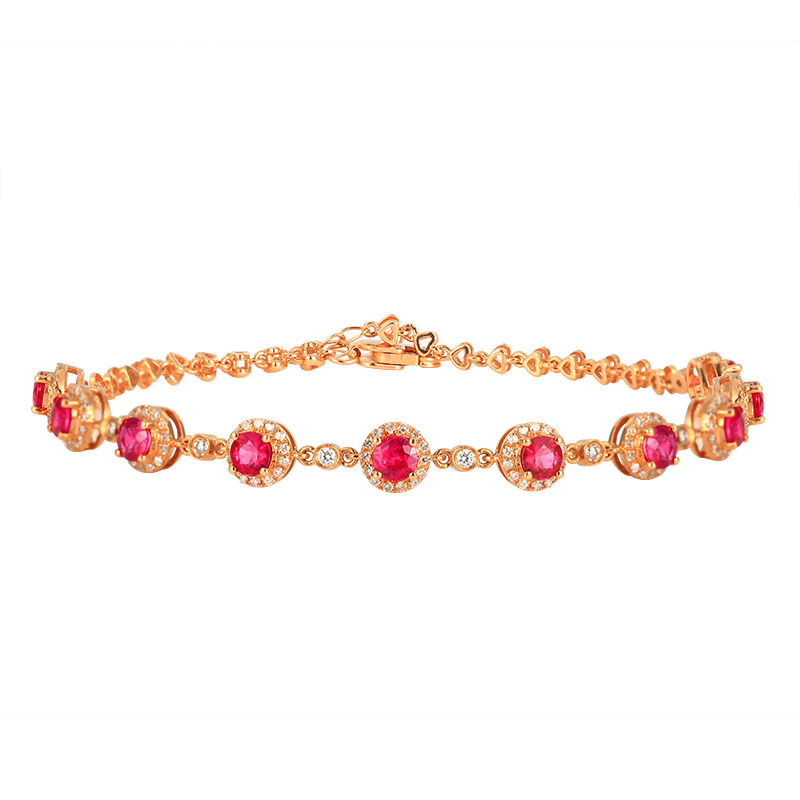 意禄 Ювелирное украшение, рубиновый браслет из натурального камня, золотая бриллиантовая классическая инкрустация камня, 1.58 карат, 18 карат, розовое золото, (в наличии на складе)