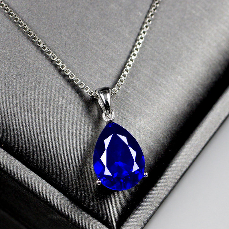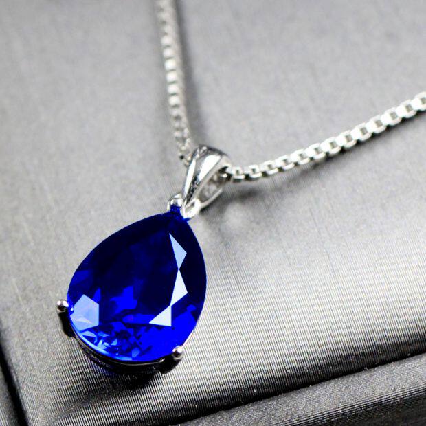 Сапфировая подвеска в форме капли, ожерелье, аксессуар, серебро 925 пробы, простой и элегантный дизайн