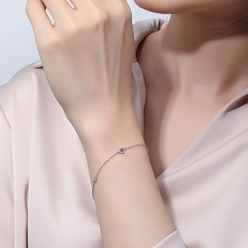 Ювелирное украшение, натуральный рубиновый бриллиантовый браслет из натурального камня из Мозамбика в форме сердца, золото 750 пробы