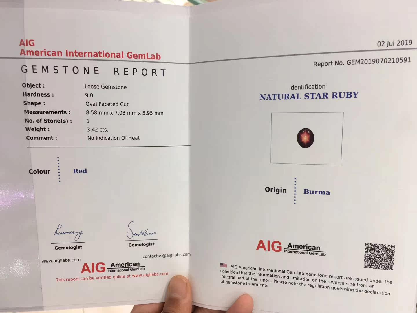 盈禄 Натуральный рубиновый драгоценный камень для кольца из Мьянмы, 3.42 карат, 3 карат