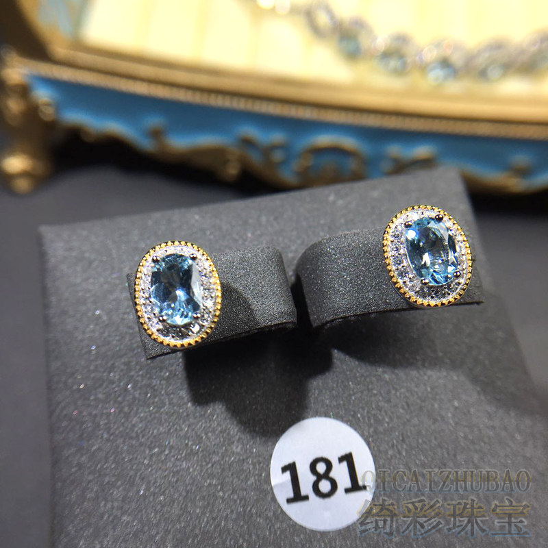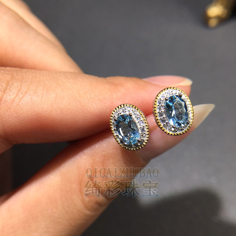 Сапфировые натуральные свежие серьги, серебро 925 пробы, 6mm