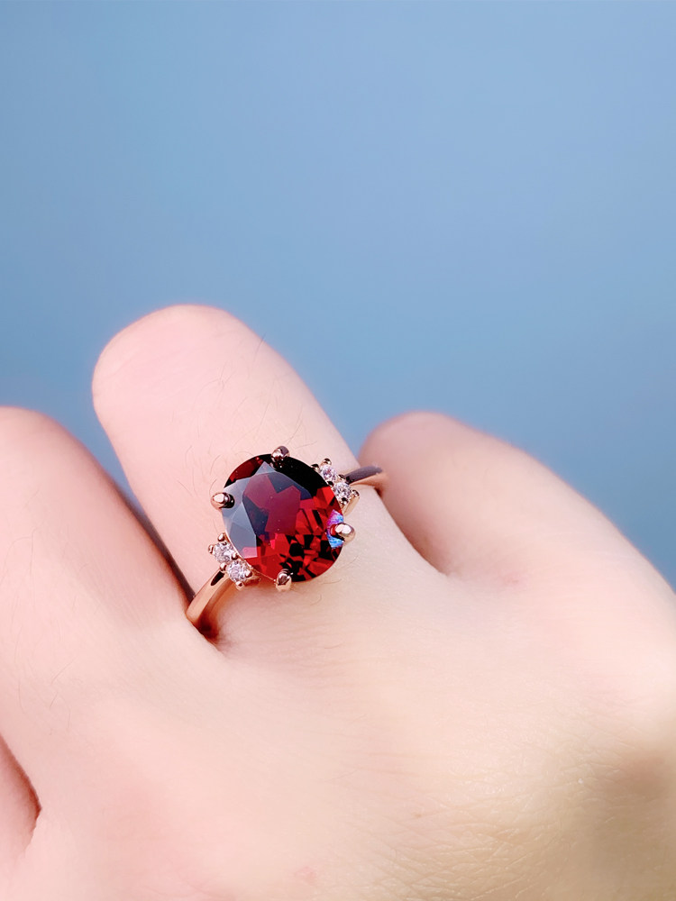 Натуральный комплект из граната, кольцо, классическая бордовая золотая подвеска, золотое ожерелье, цепочка, серебро 925 пробы, 8x, розовое золото