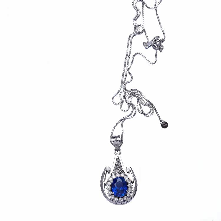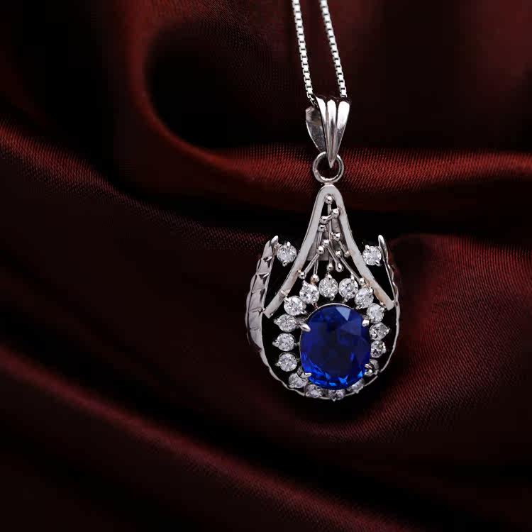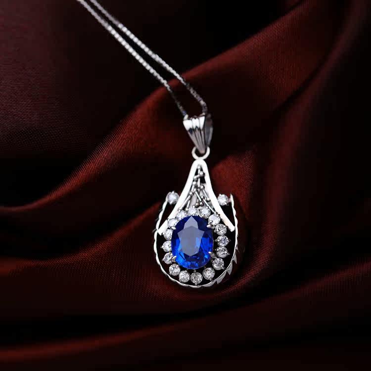 Ювелирное украшение, сапфировое бриллиантовое платиновое ожерелье, 2.45 карат