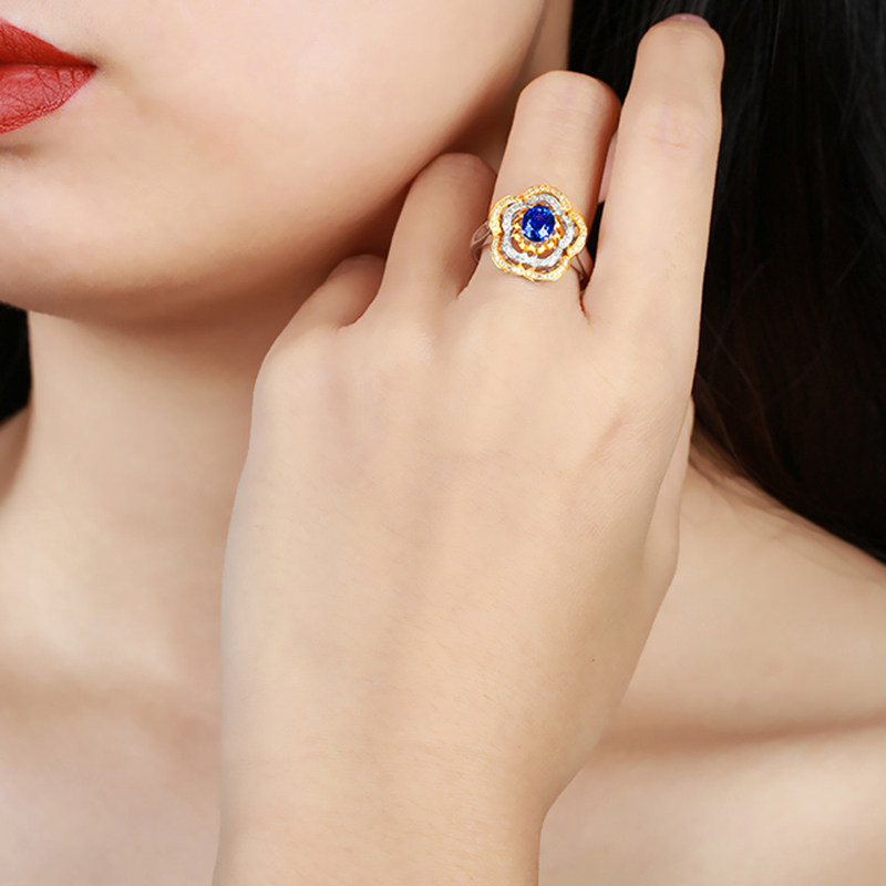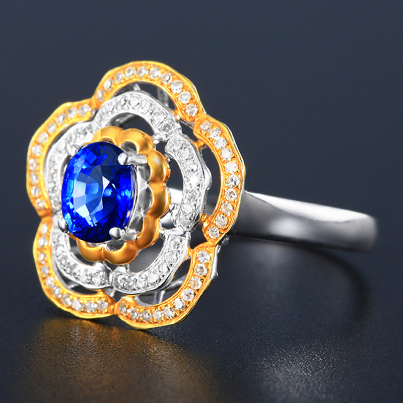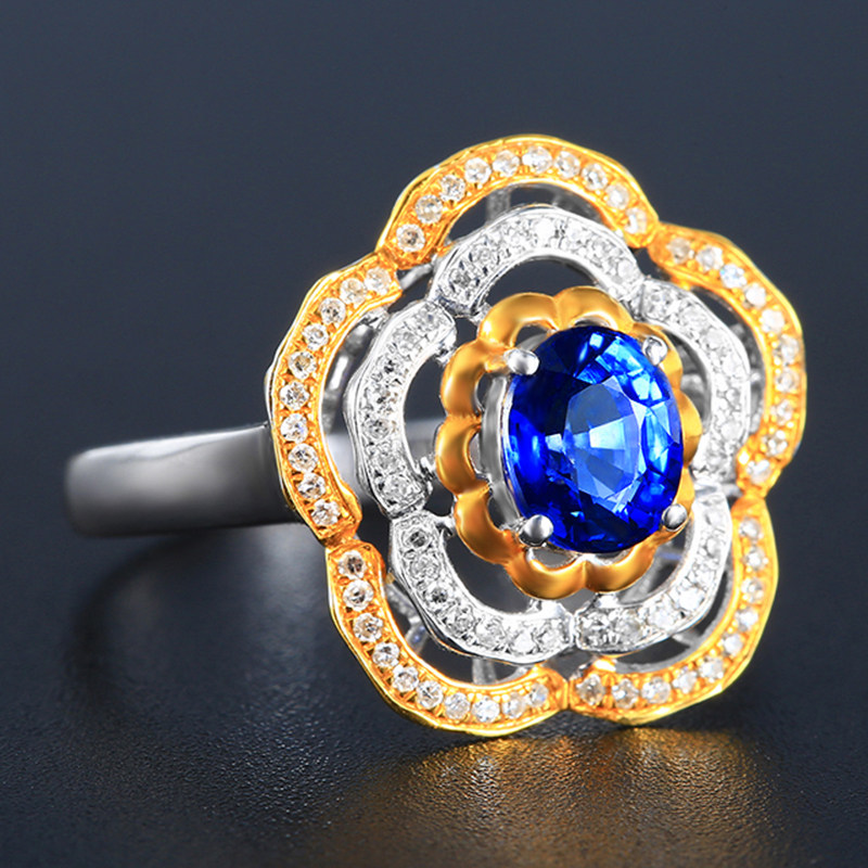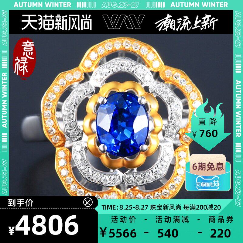 意禄 Ювелирное украшение, сапфировое кольцо с камнем, бриллиантовая инкрустация камня из натурального камня, 1.13 карат, женский стиль, золото 750 пробы, (в наличии на складе)