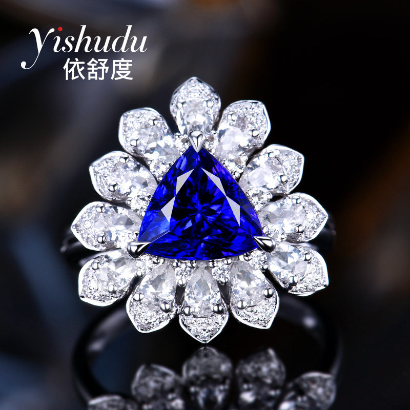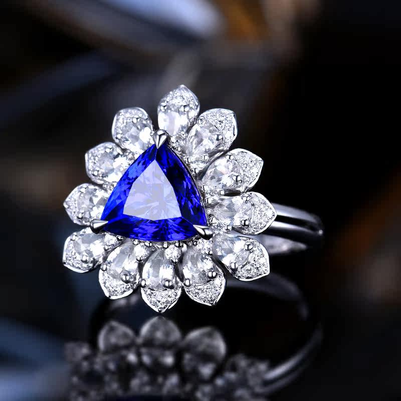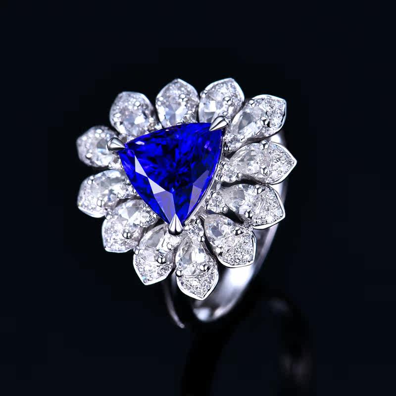 Натуральное кольцо с камнем, треугольник, сапфировая инкрустация камня, 3.1 карат, золото 750 пробы
