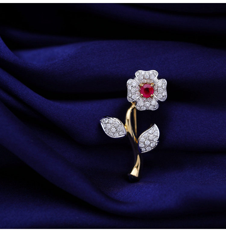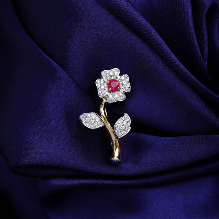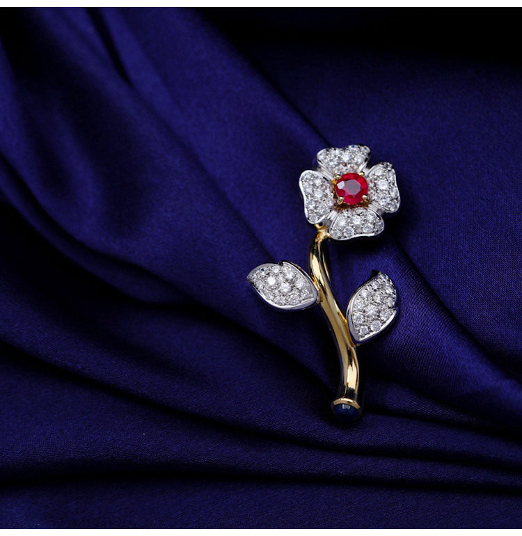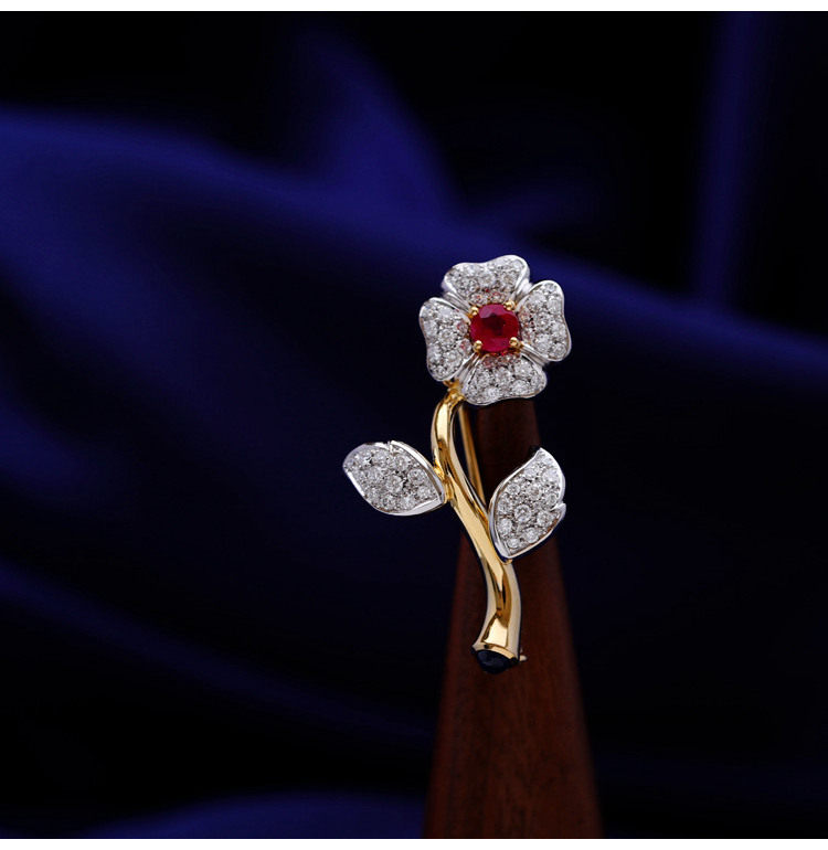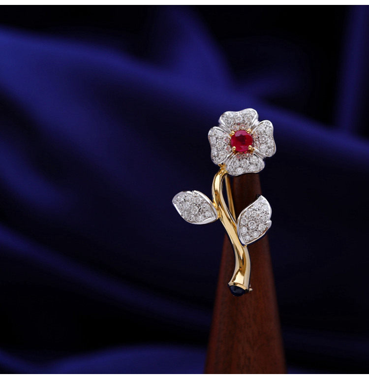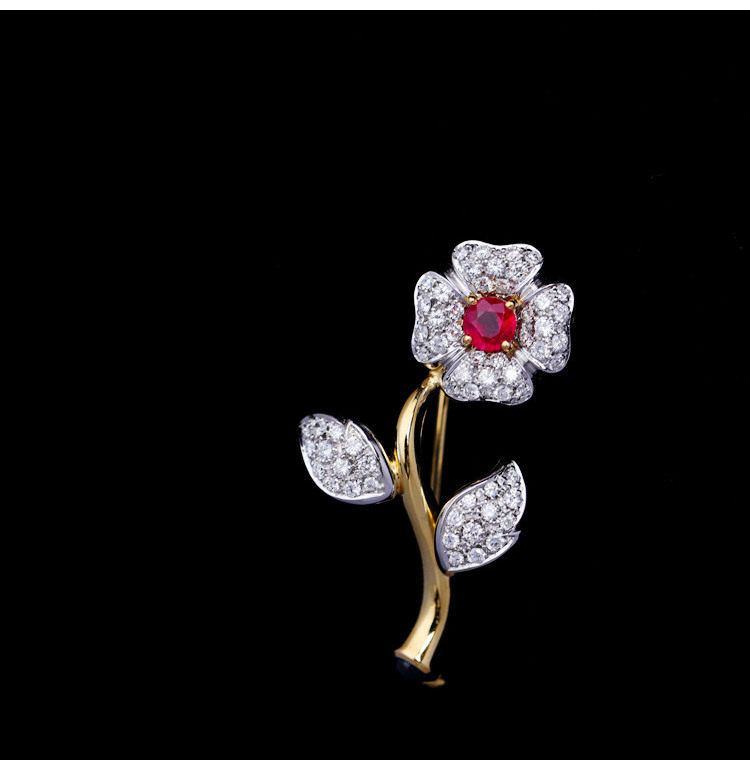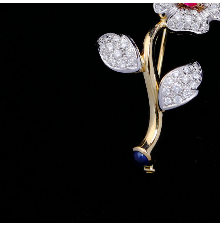 存臻 Антикварное рубиновое бриллиантовое ювелирное украшение, брошь, 0.68 карат, Италия, золото 750 пробы