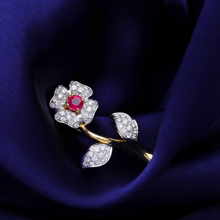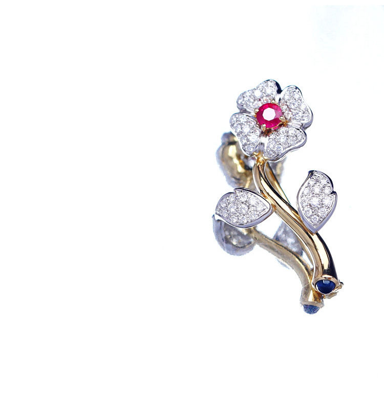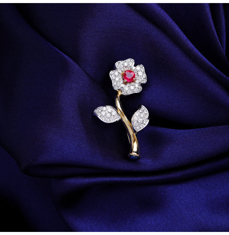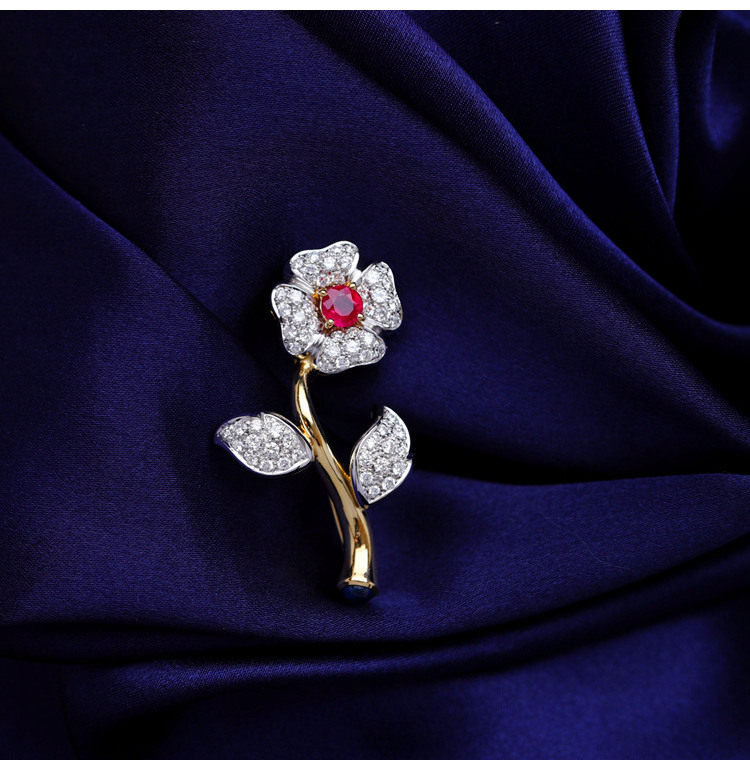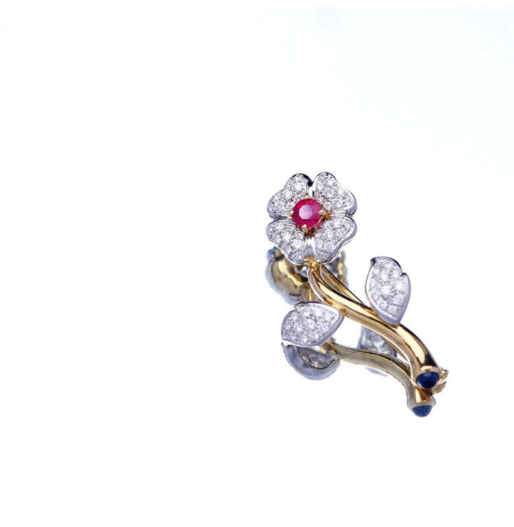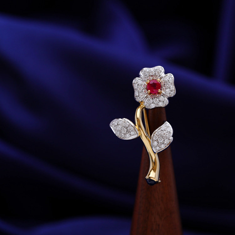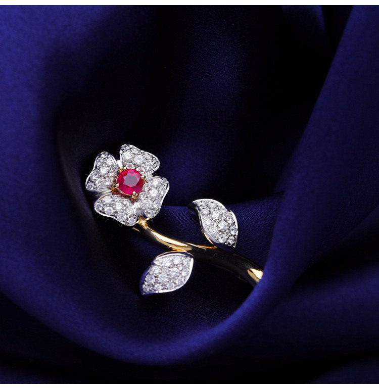 存臻 Антикварное рубиновое бриллиантовое ювелирное украшение, брошь, 0.68 карат, Италия, золото 750 пробы