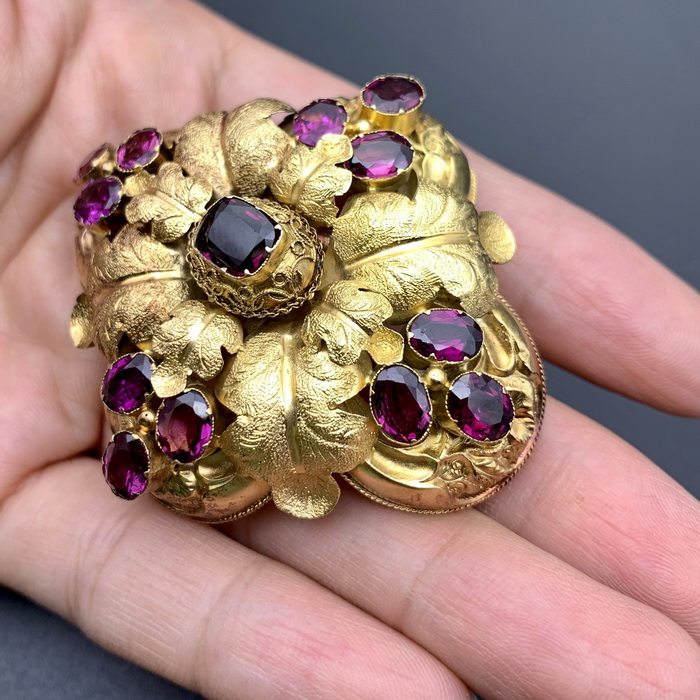 [Замечания]: Источник этой грудной иглы исходит от европейских антикварных дилеров.Большая брошь, чистая рука, форма цветка и винограда, с изысканным цветочным мастерством, нежным и деликатным, изысканным, очень коллекционным значением.Брошь используется для фиксированных дворянских дам и юбков во время викторианского периода.