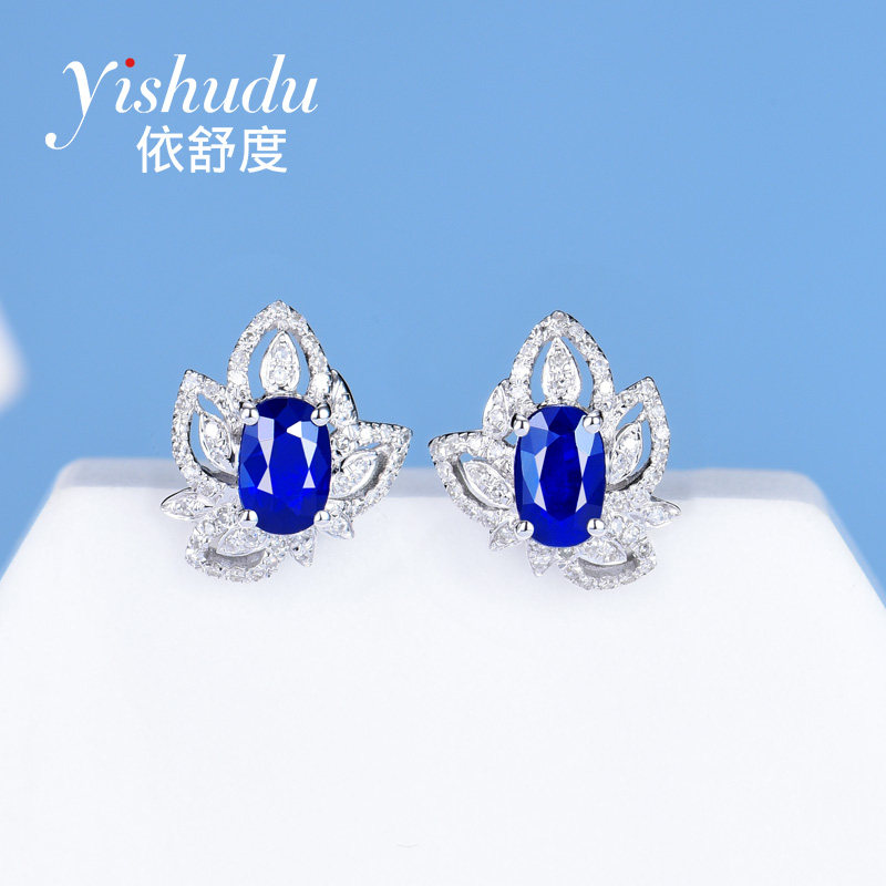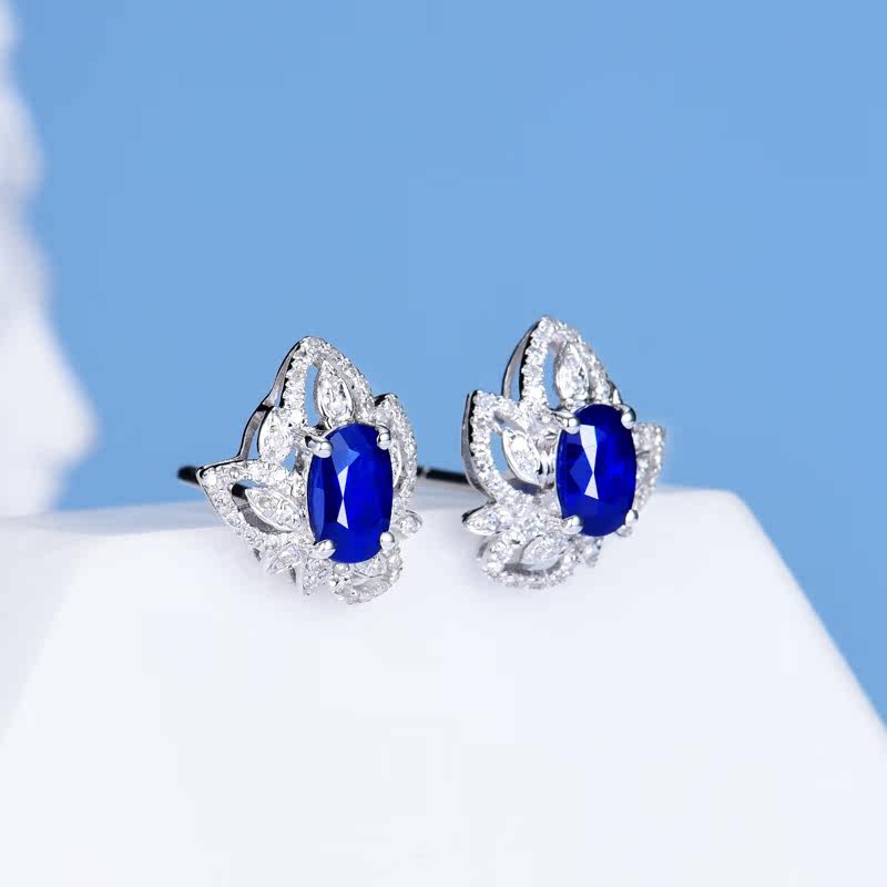Сапфировые серьги из нефрита, бриллиантовая инкрустация камня, 0.77 карат, золото 750 пробы, делается под заказ