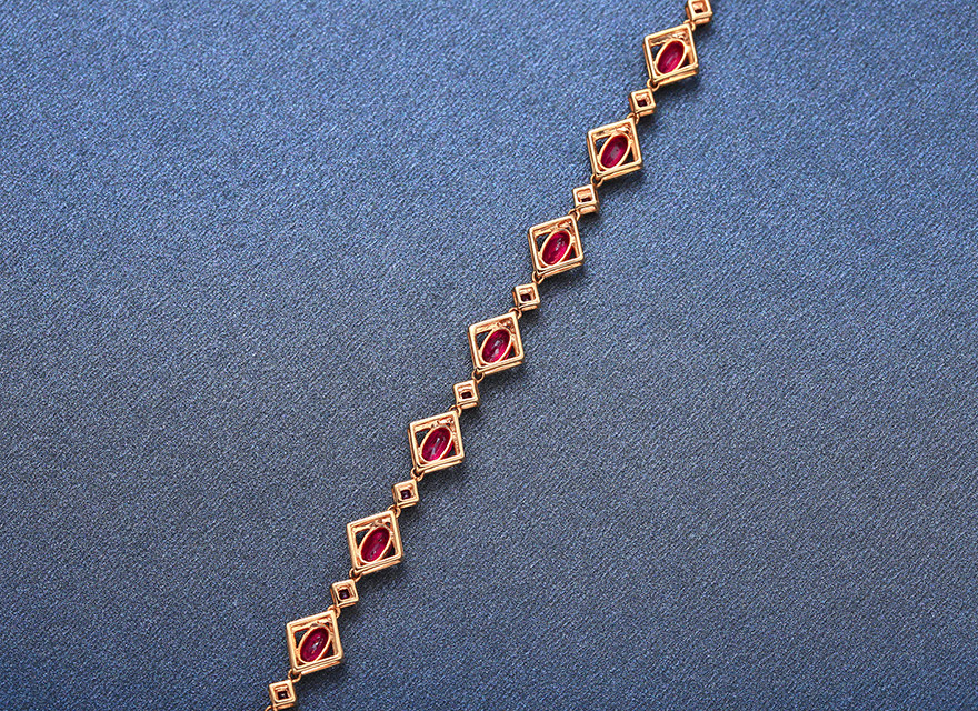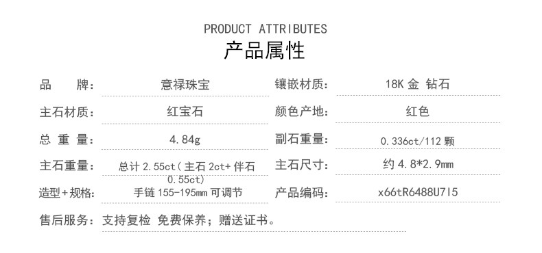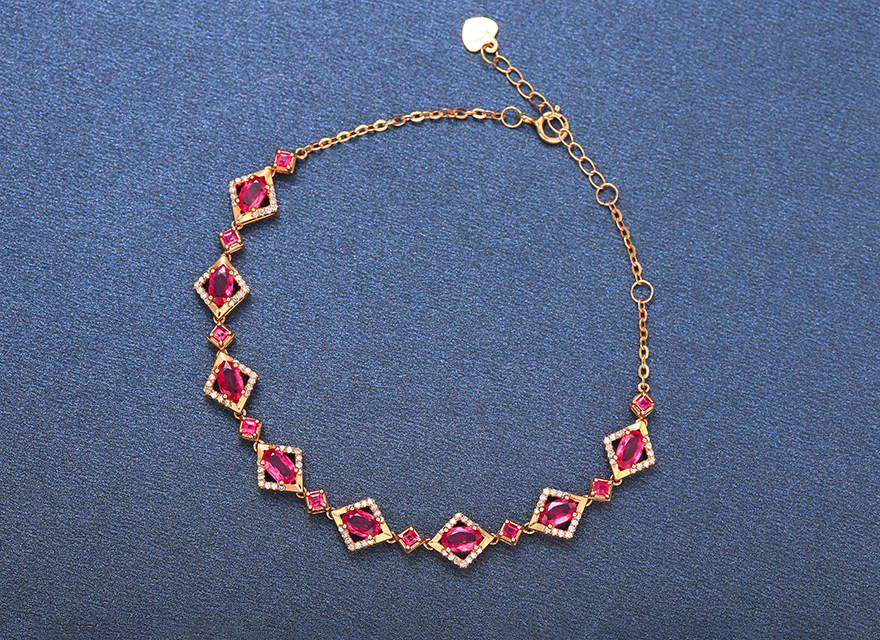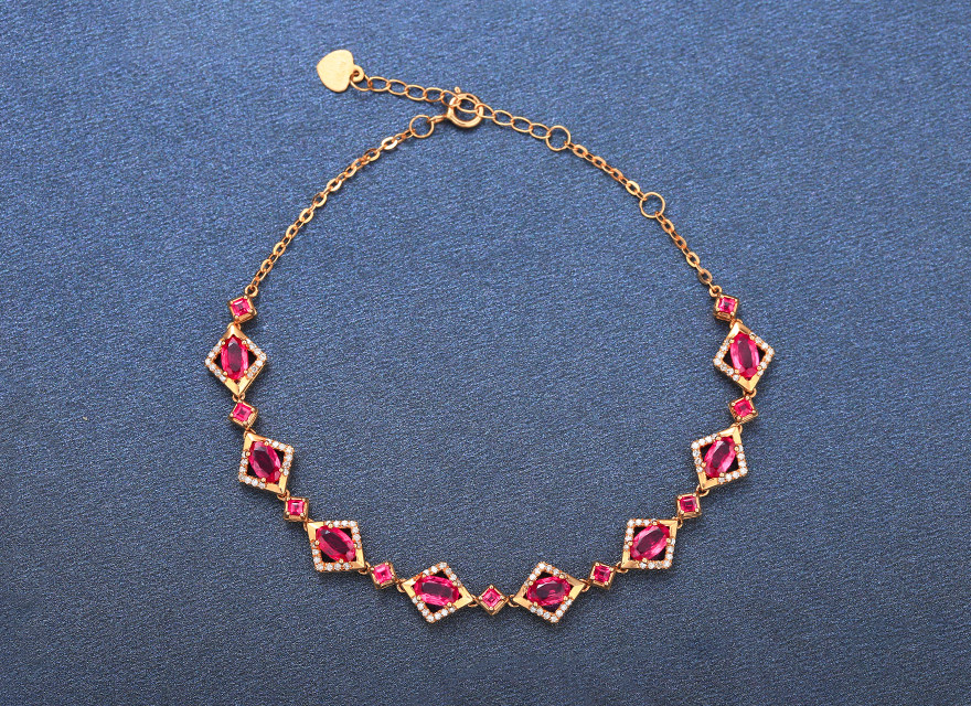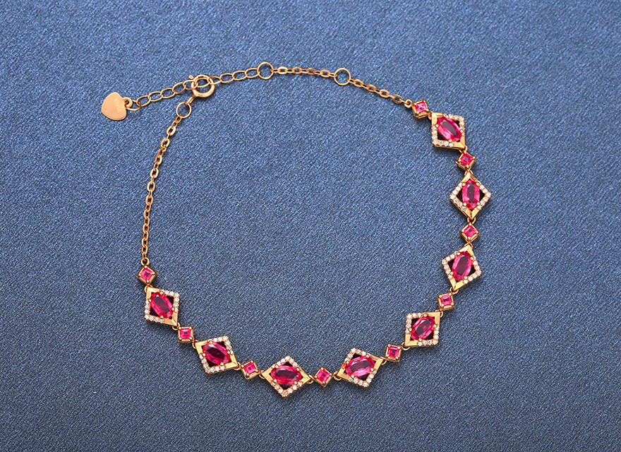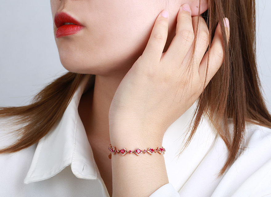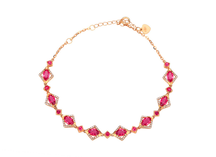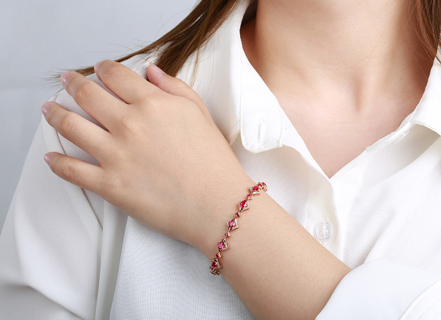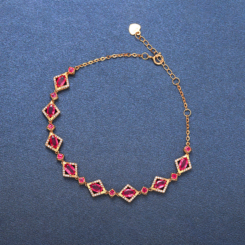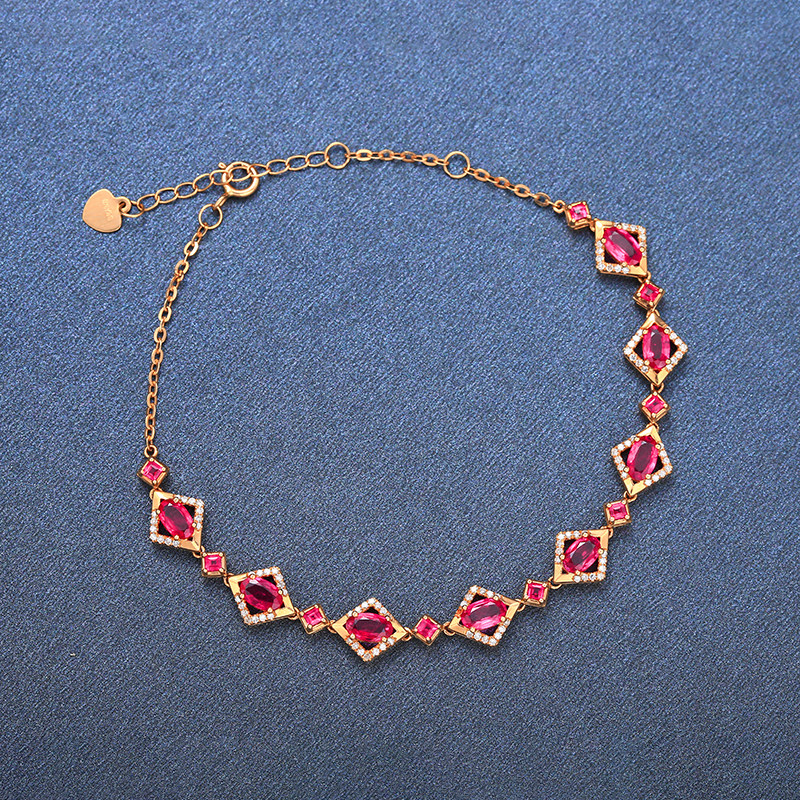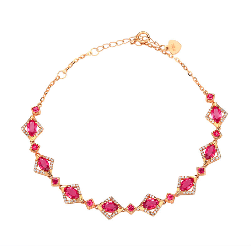 意禄 Ювелирное украшение, рубиновый браслет из натурального камня, золотая бриллиантовая инкрустация камня, 2.55 карат, женский стиль, 18 карат, розовое золото, (в наличии на складе)