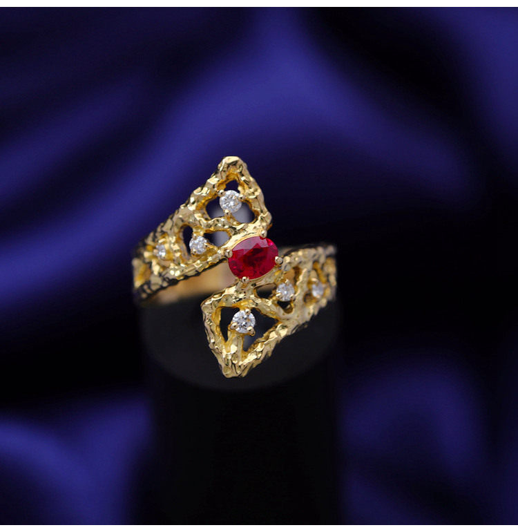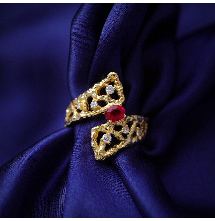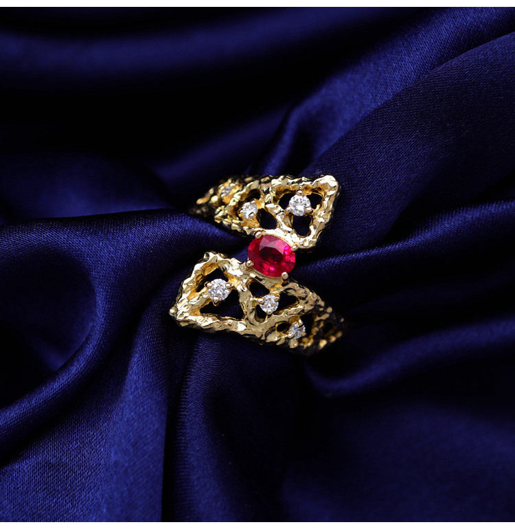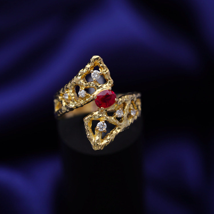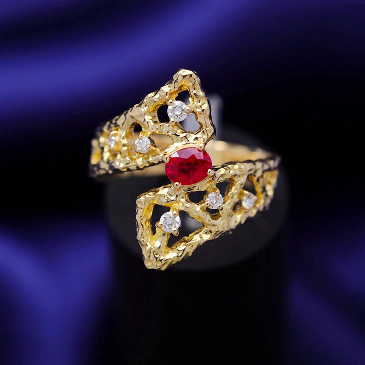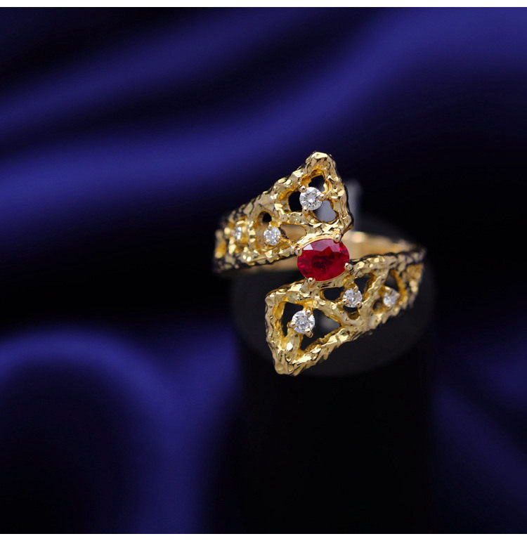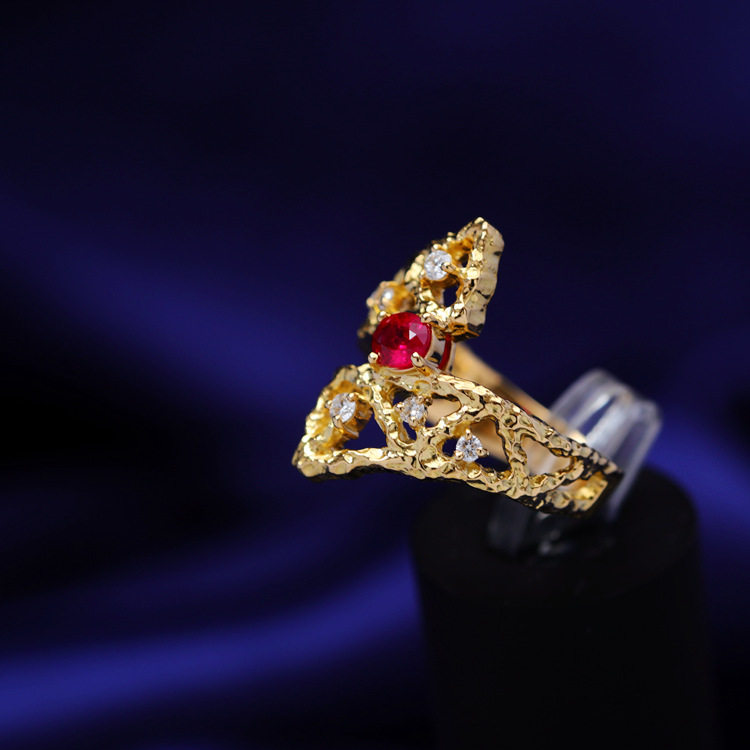 存臻 Ювелирное украшение, рубиновое бриллиантовое дизайнерское кольцо, 0.36 карат, золото 750 пробы, тренд сезона