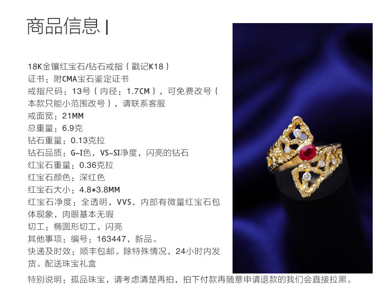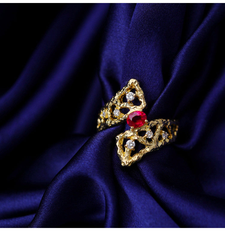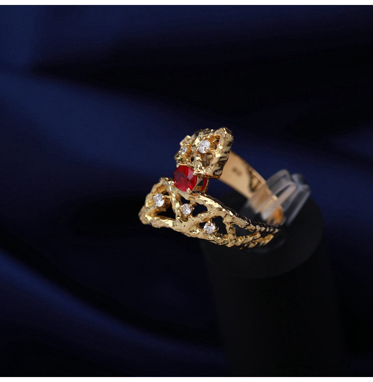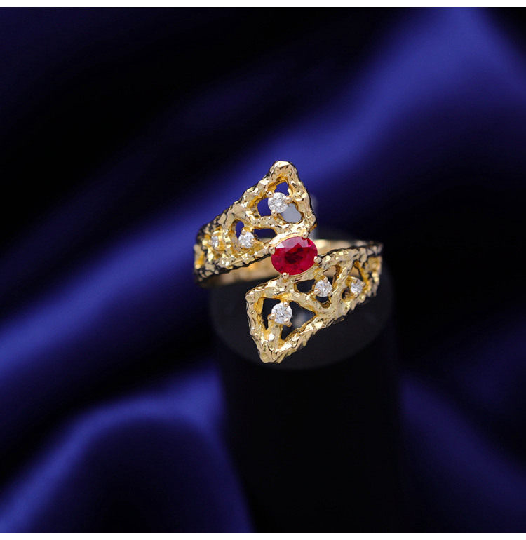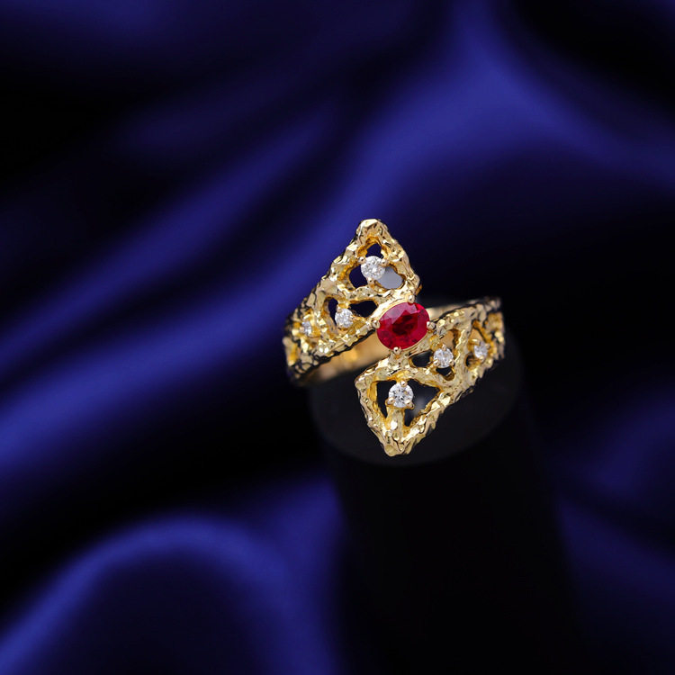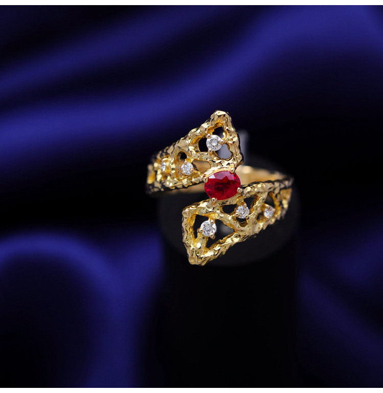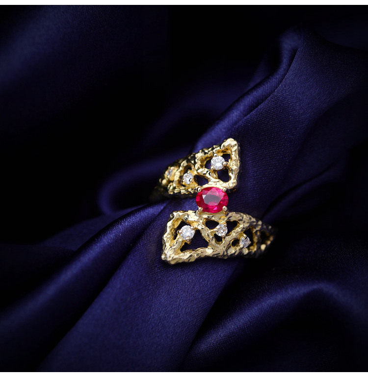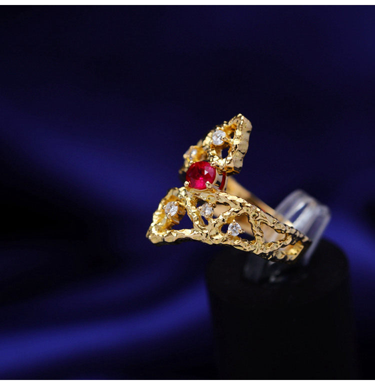存臻 Ювелирное украшение, рубиновое бриллиантовое дизайнерское кольцо, 0.36 карат, золото 750 пробы, тренд сезона