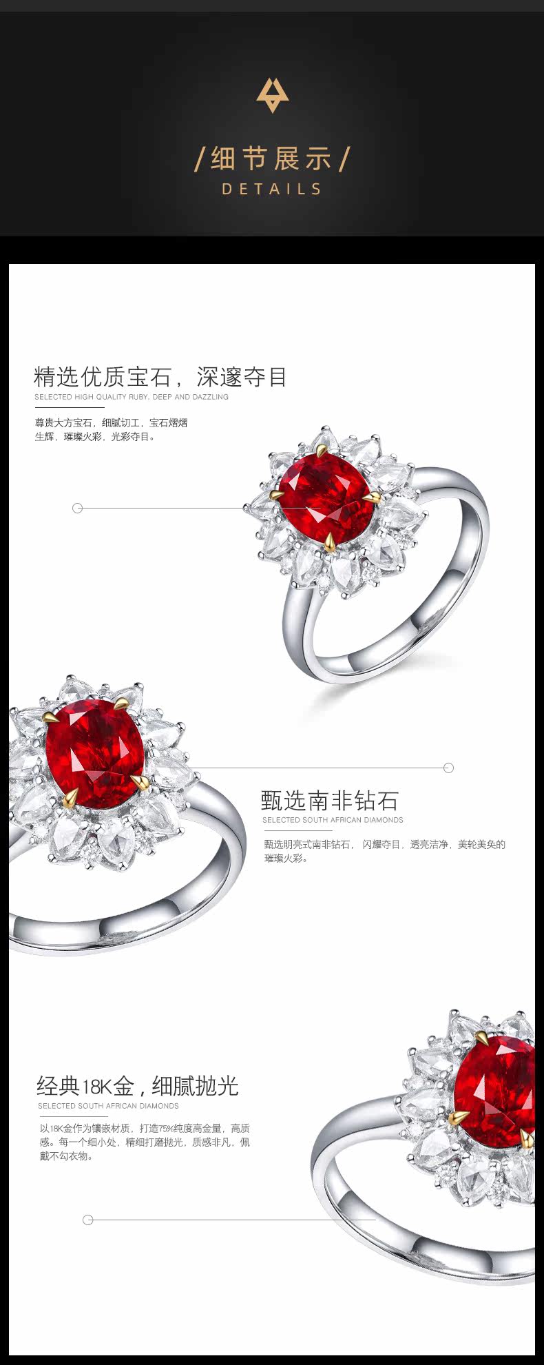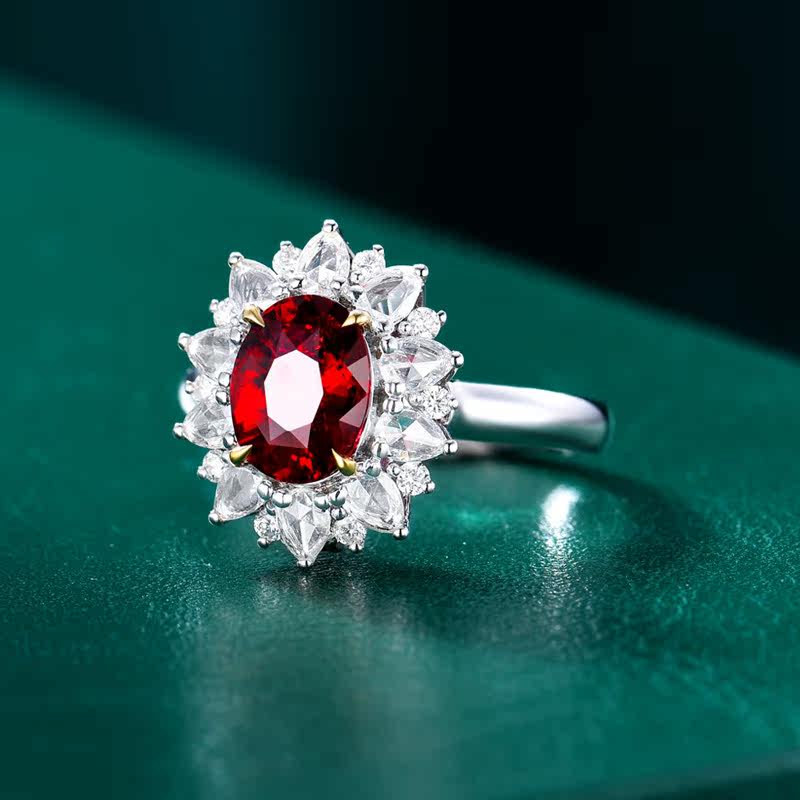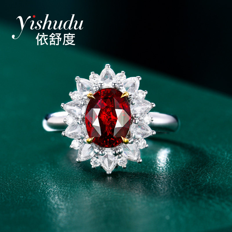 Натуральное рубиновое кольцо с камнем, бриллиантовая инкрустация камня, 2.01 карат, золото 750 пробы