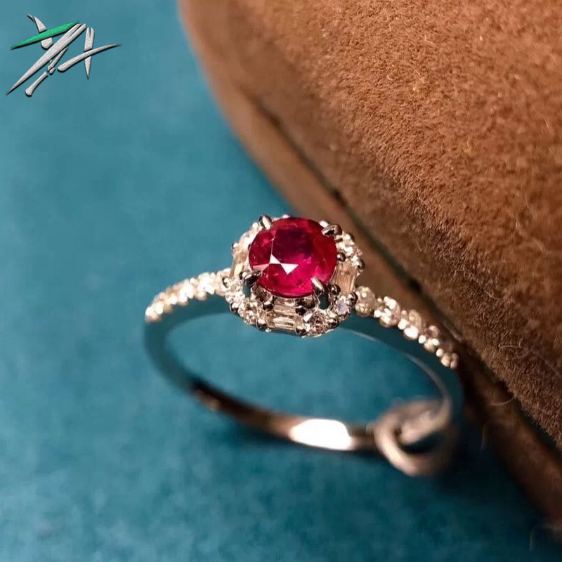 Натуральное рубиновое бриллиантовое модное кольцо с камнем, золото 750 пробы