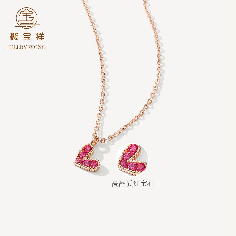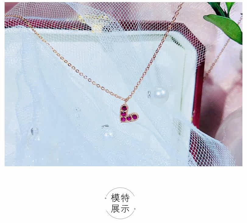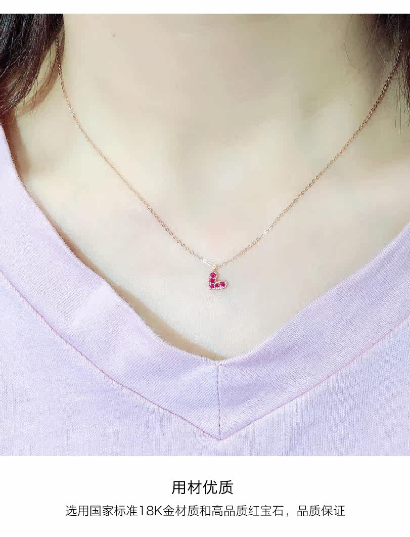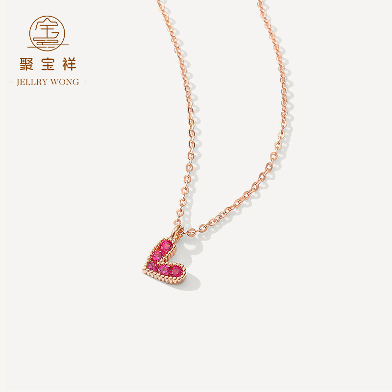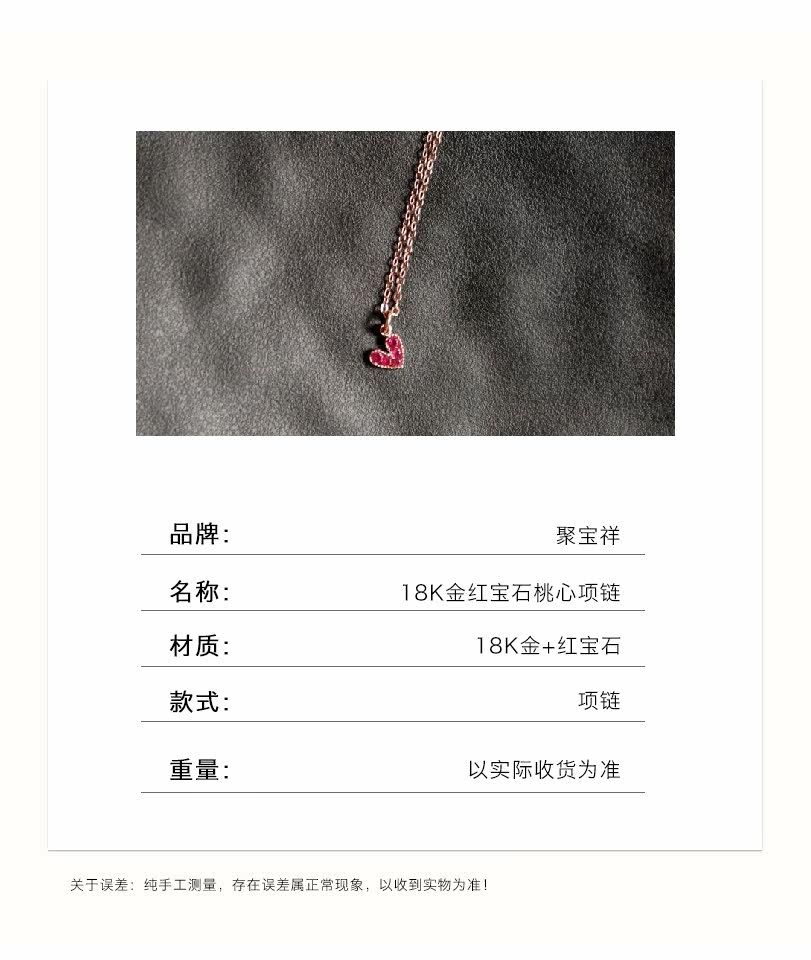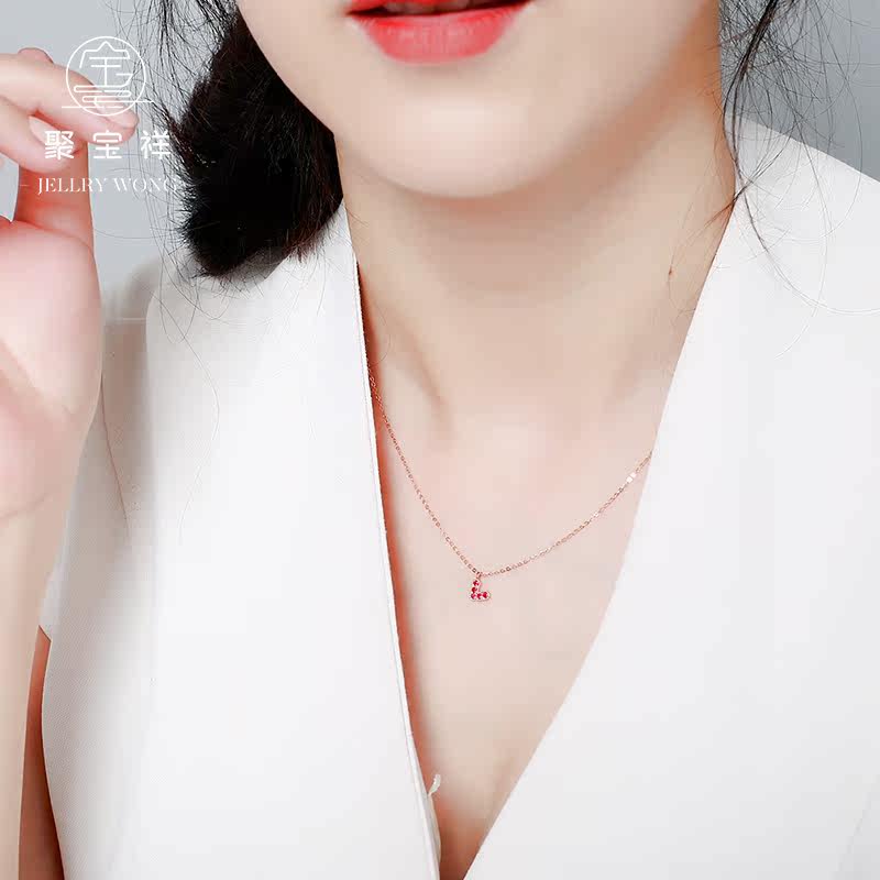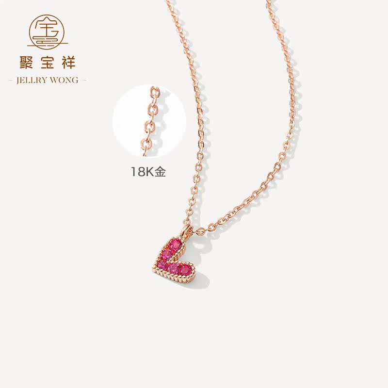 聚宝祥 Ожерелье, золотая рубиновая инкрустация камня, подвеска в виде сердечка, свитер, цепочка до ключиц, золото 18 карат, розовое золото
