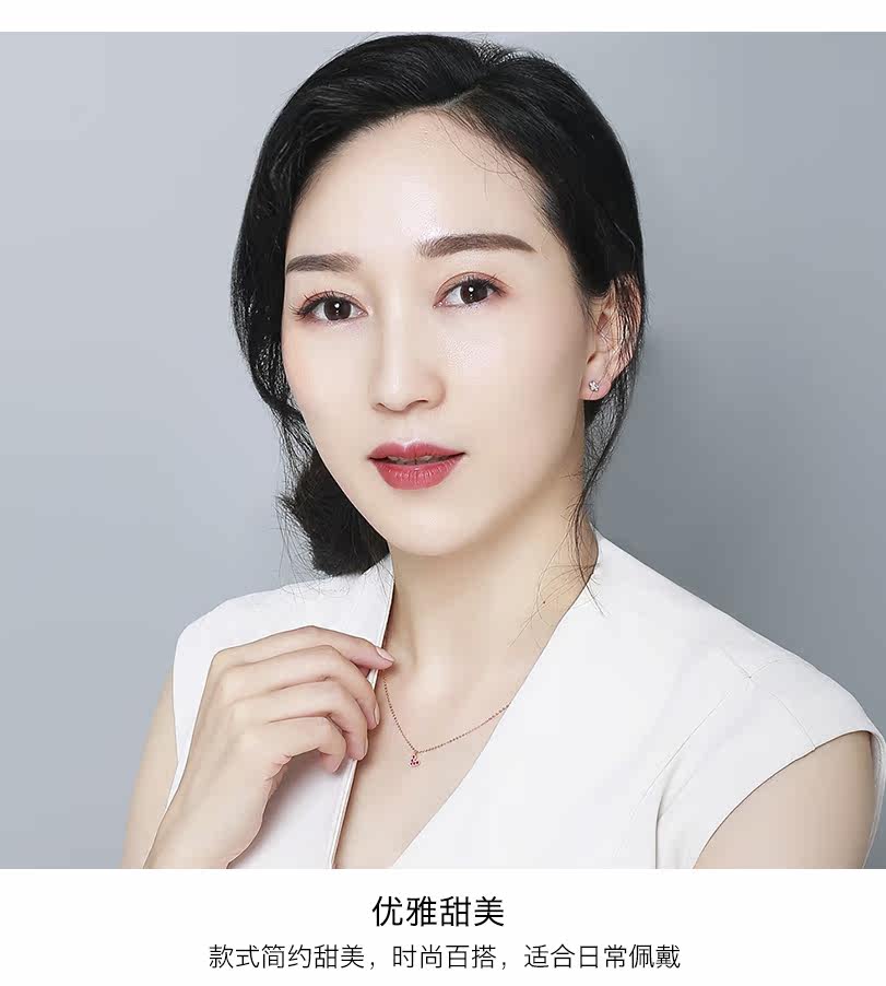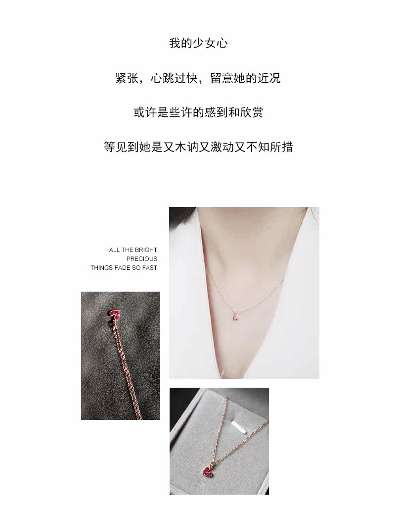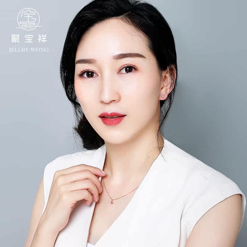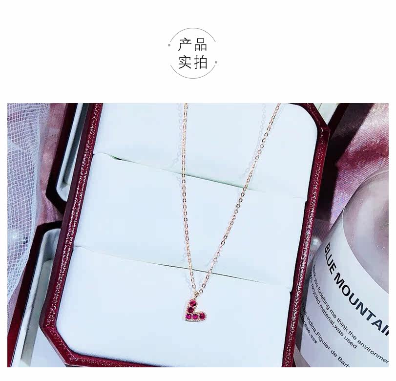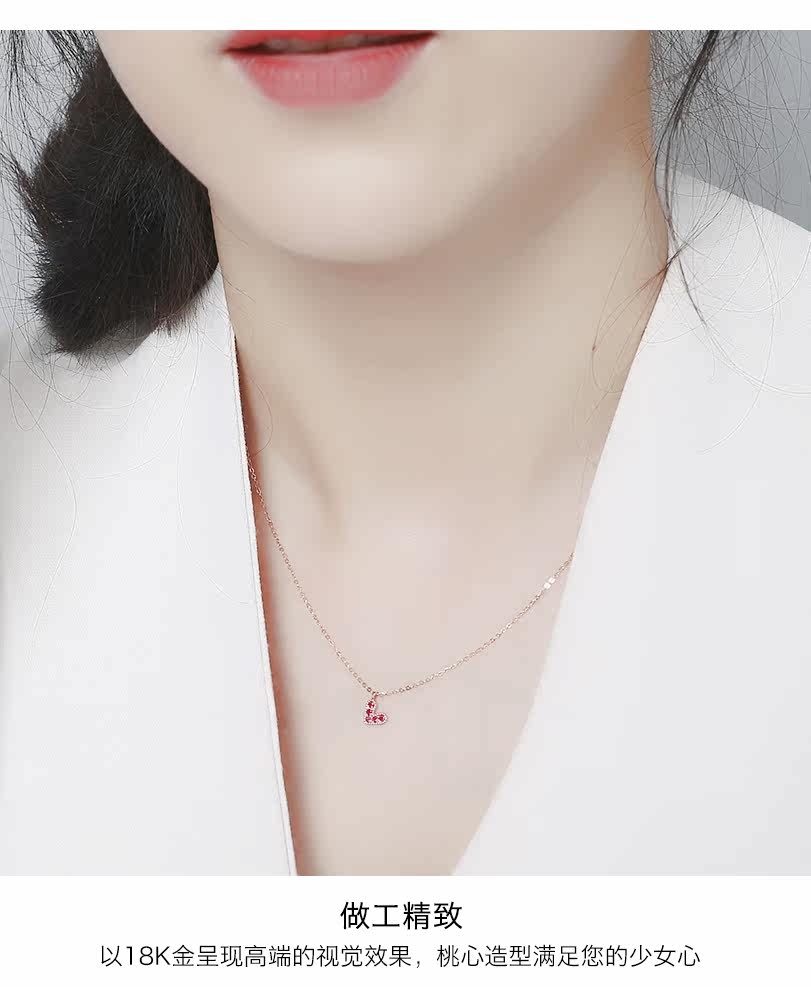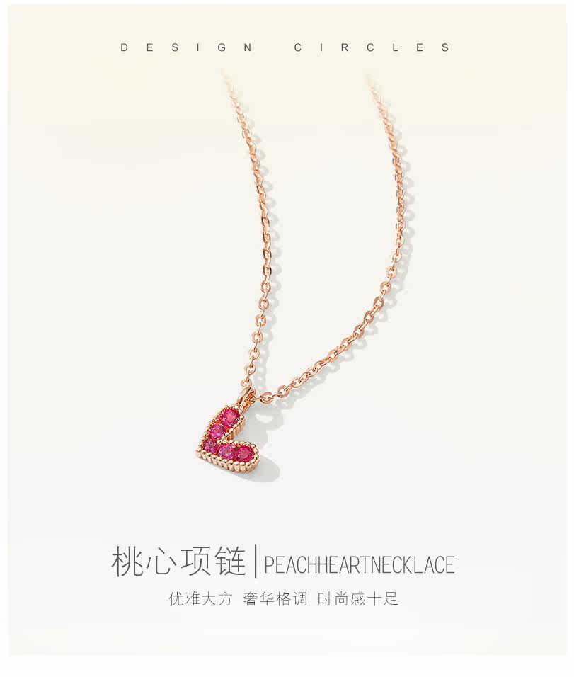 聚宝祥 Ожерелье, золотая рубиновая инкрустация камня, подвеска в виде сердечка, свитер, цепочка до ключиц, золото 18 карат, розовое золото