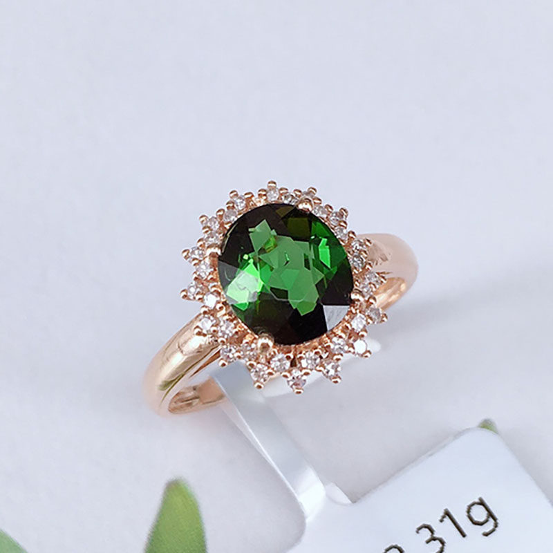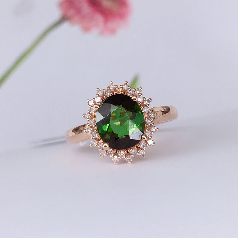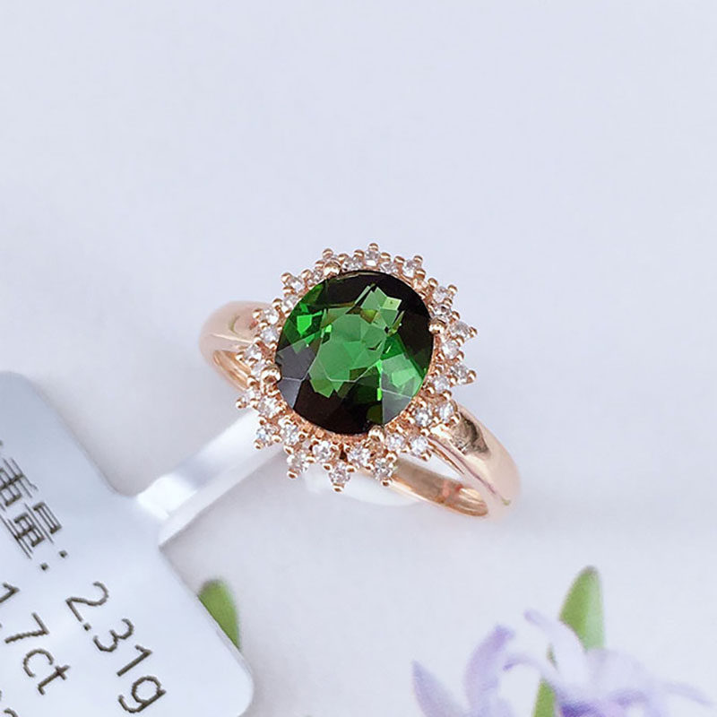 八通宝玉 Изысканная турмалиновая бриллиантовая инкрустация камня, обручальное кольцо, золотой аксессуар, 18 карат, розовое золото, делается под заказ