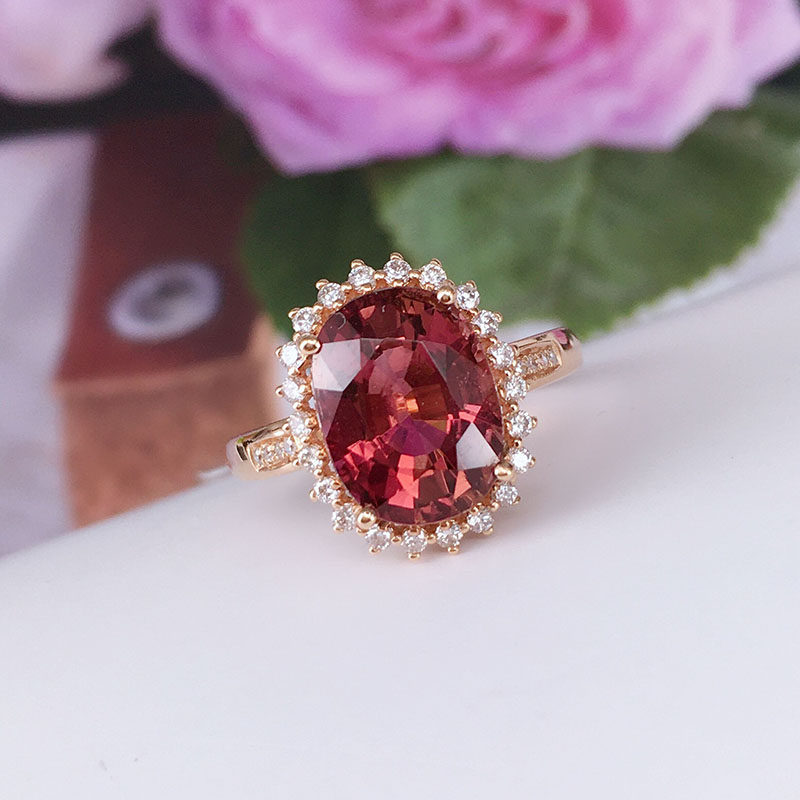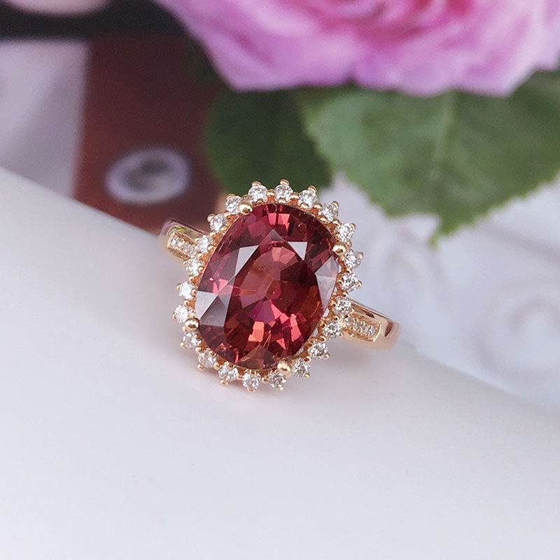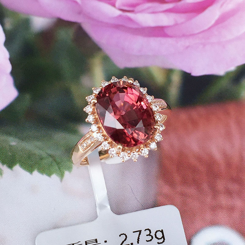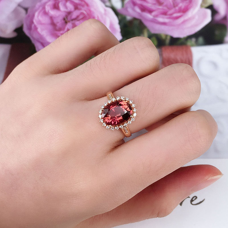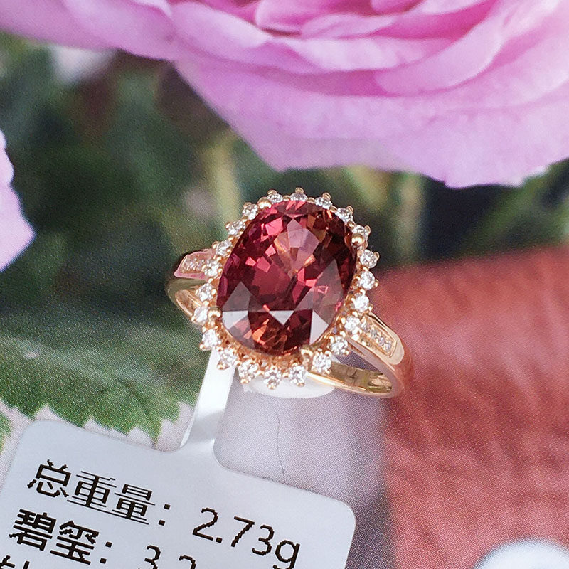 娅维娅(饰品) Кольцо, турмалиновая бриллиантовая инкрустация камня, аксессуар, простой и элегантный дизайн, яркий броский стиль, женский стиль, цвета шампанского