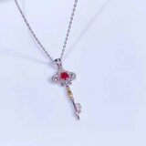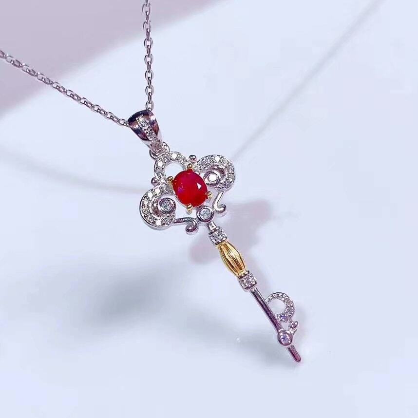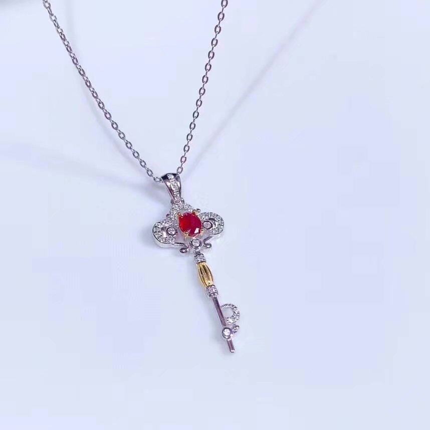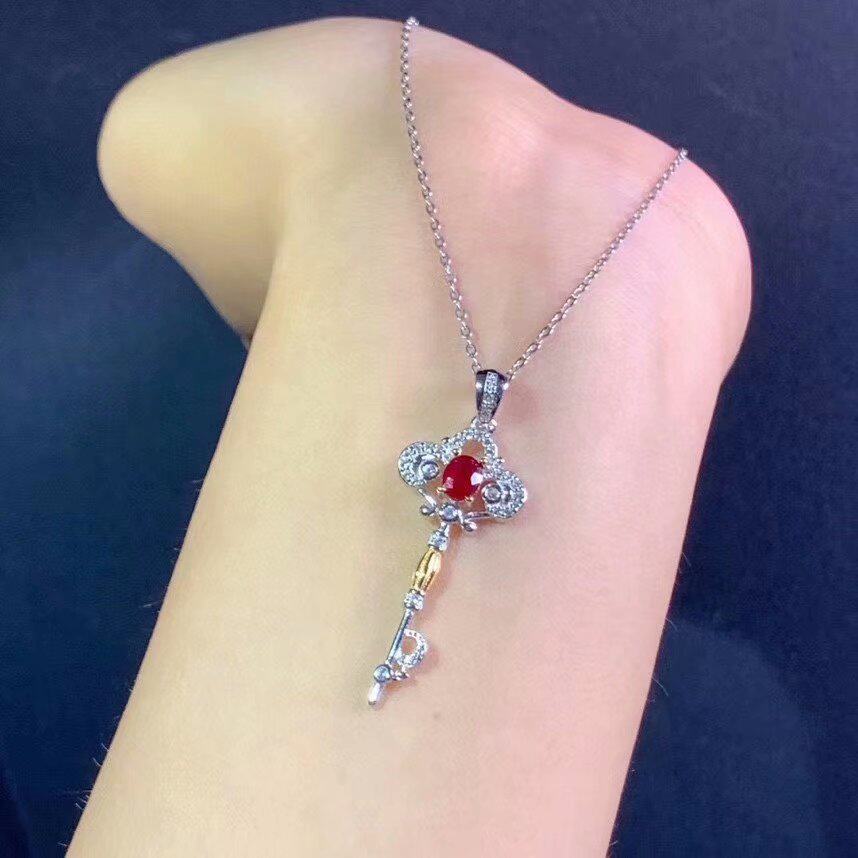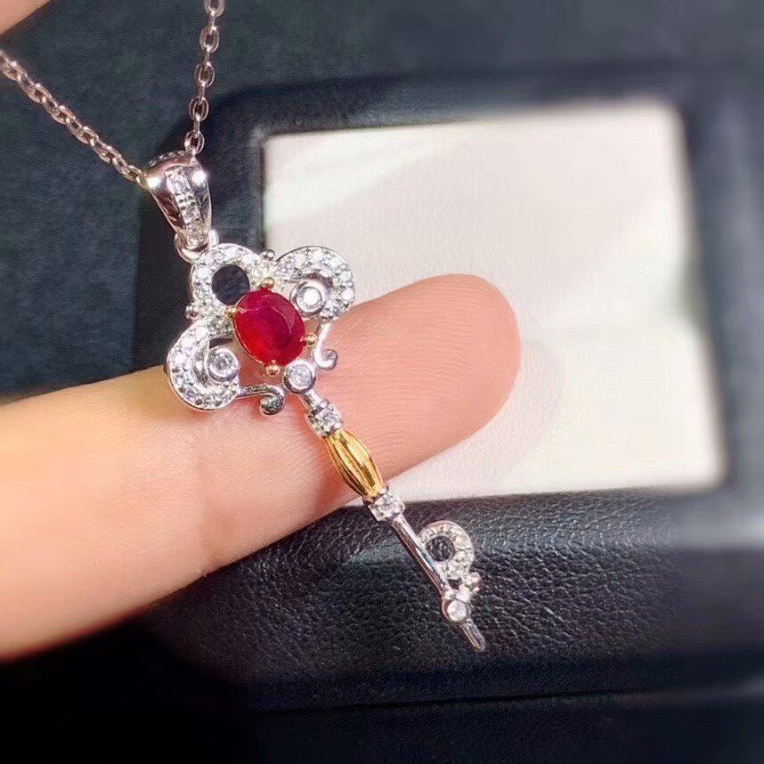 Подвеска для ключей, натуральная рубиновая инкрустация камня, ожерелье, цепочка, серебро 925 пробы, подарок на день рождения