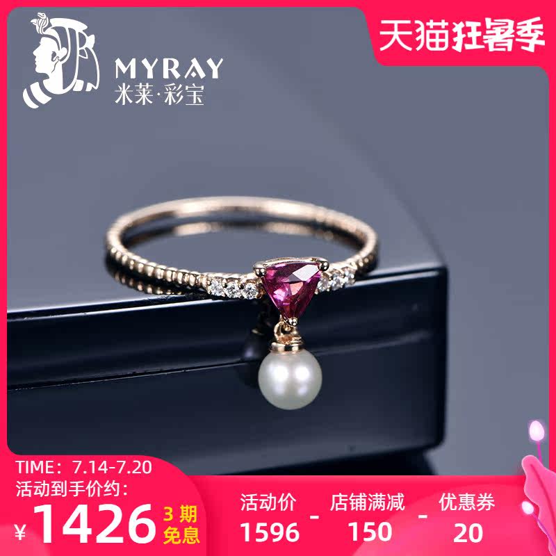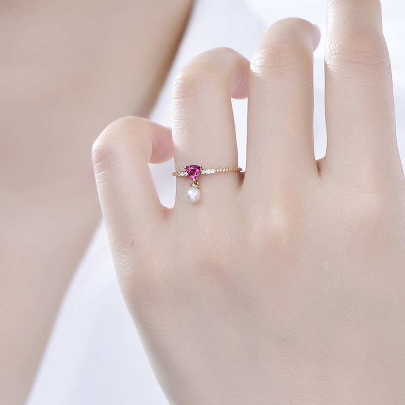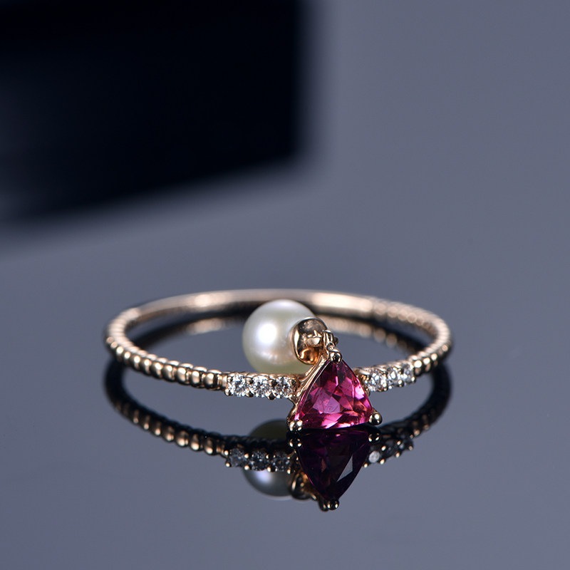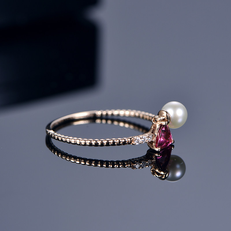 米莱 Натуральное ювелирное украшение, турмалиновое золотое кольцо из жемчуга, золото 750 пробы, розовое золото, делается под заказ