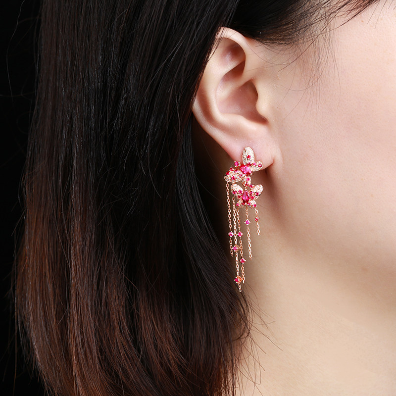 意禄 Ювелирное украшение, рубиновые серьги, бриллиантовая инкрустация камня, делается под заказ, 2.03 карат, золото 750 пробы