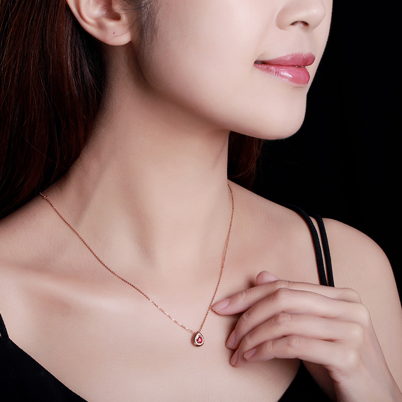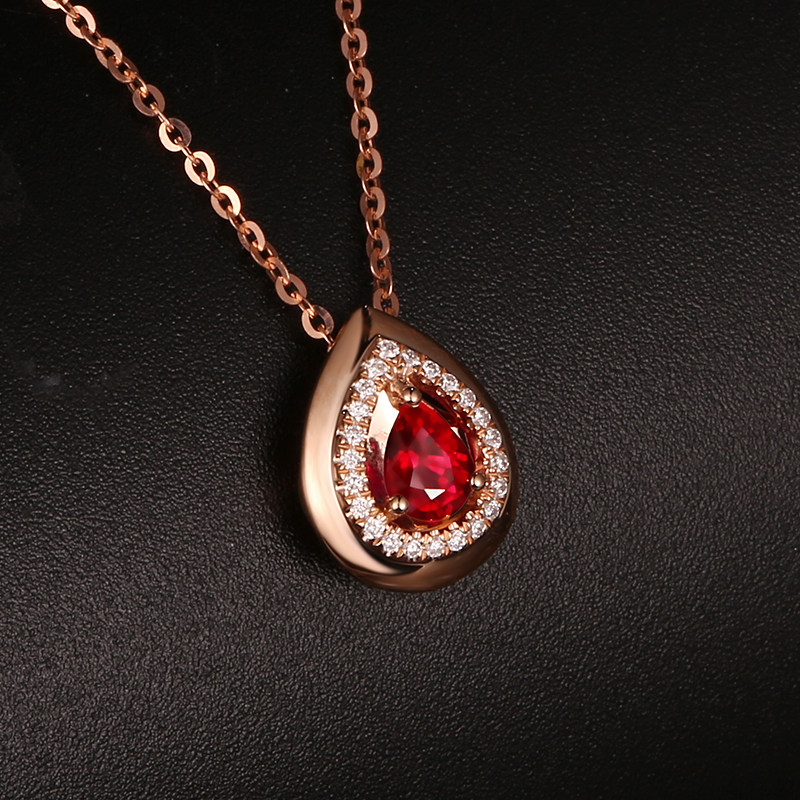 Robira Натуральная рубиновая подвеска, золотая инкрустация камня, ожерелье, 0.5 карат, 18 карат, розовое золото