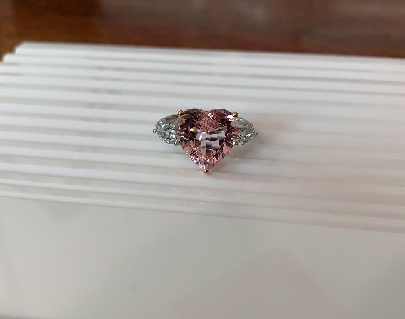 [Продажа может быть установлена] Натуральная бразильская розовая любовь Morgan Stone Three Stone Diamond Rings