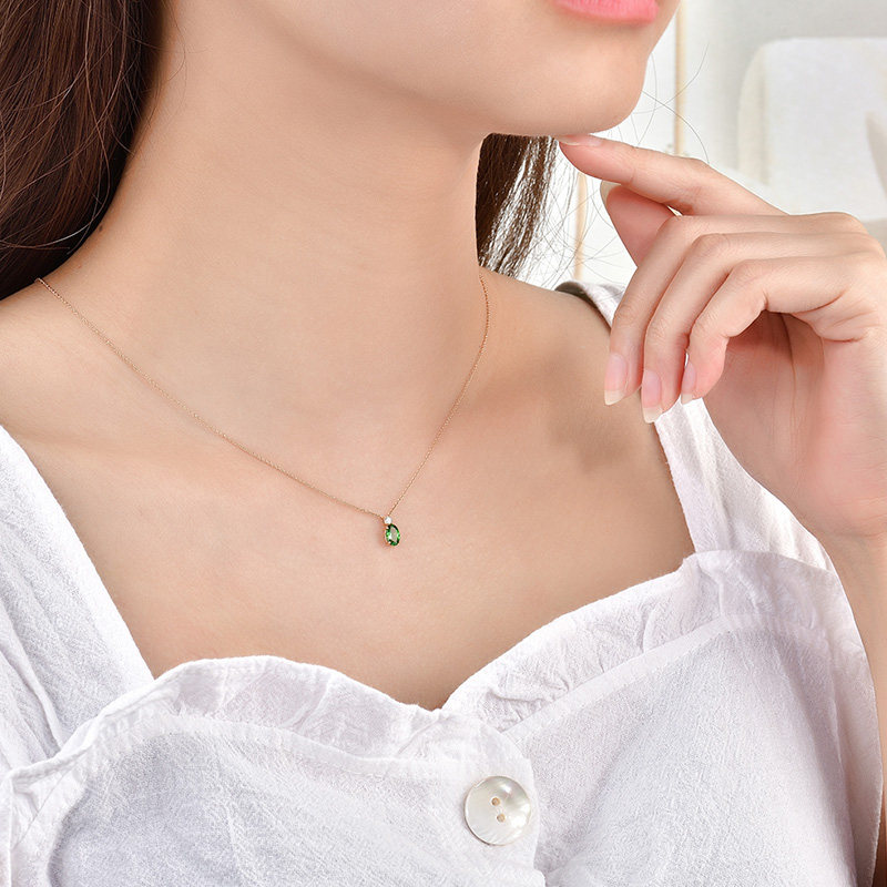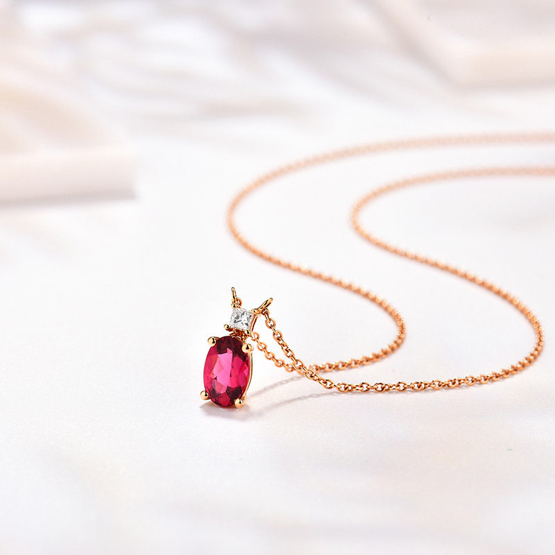欧意 Бриллиантовая турмалиновая подвеска, ювелирное украшение, цепочка до ключиц, 18 карат, делается под заказ, с драгоценным камнем