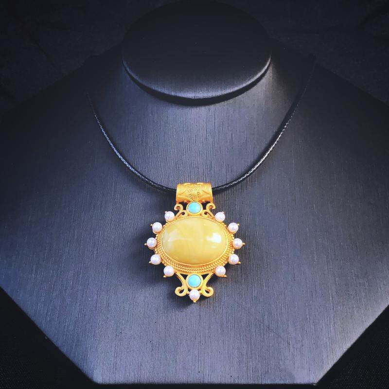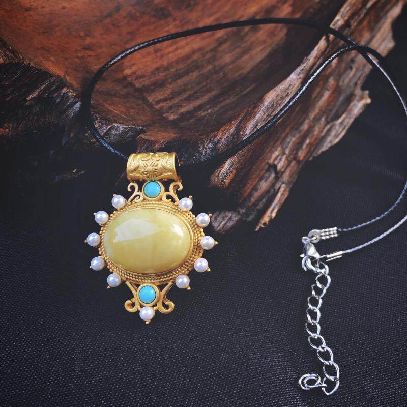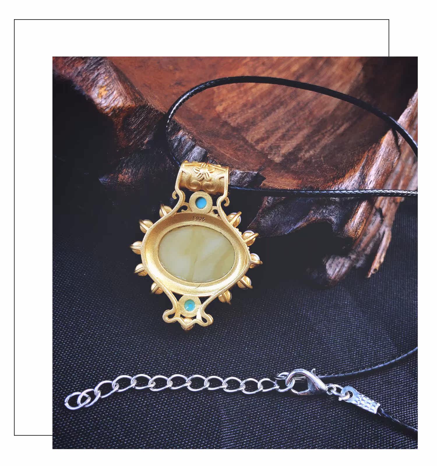 艾米尔 Бирюзовая ретро инкрустация камня из воскового агата, ожерелье, серебро 925 пробы, серебро 925 пробы