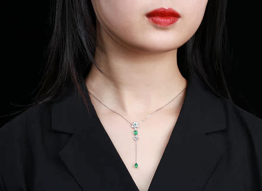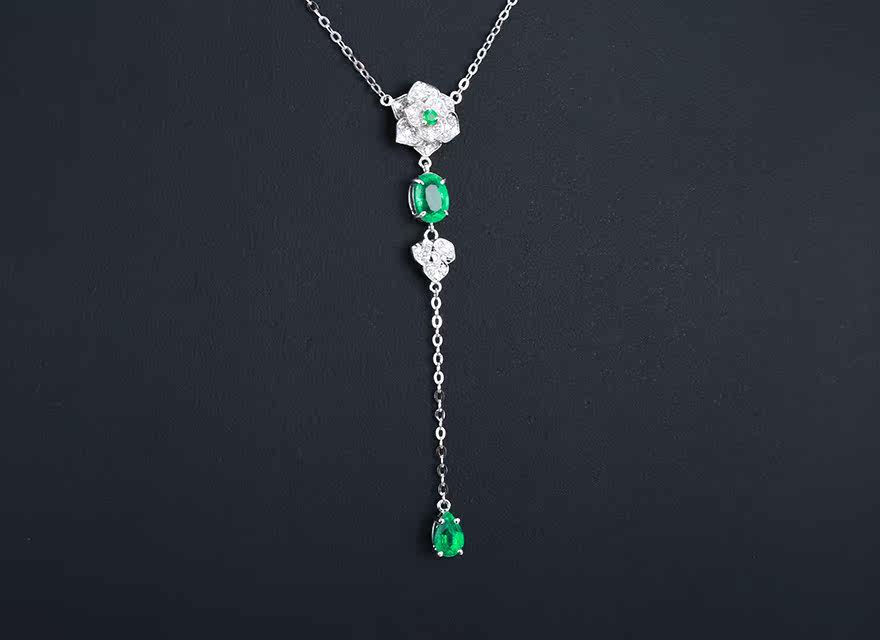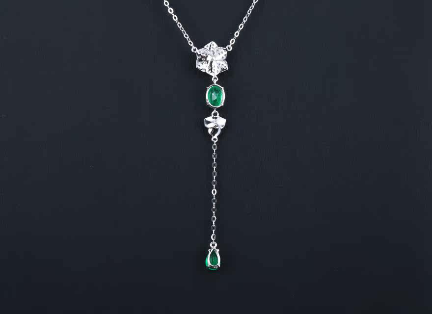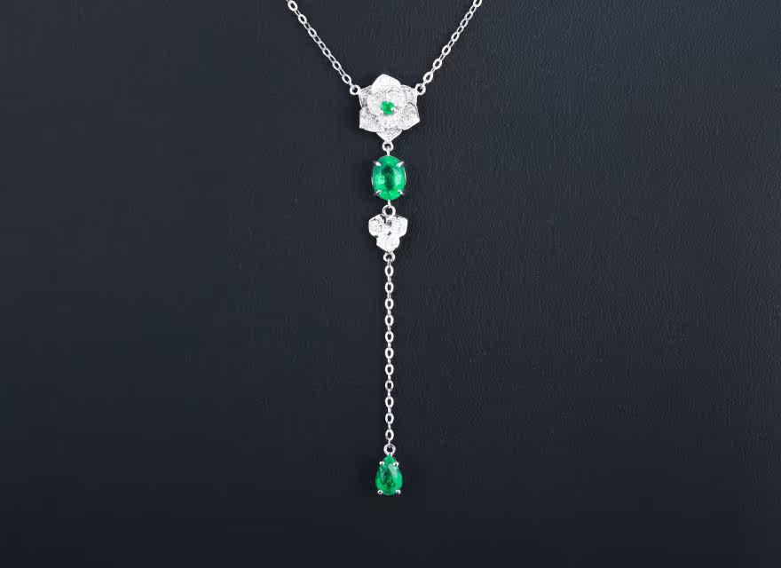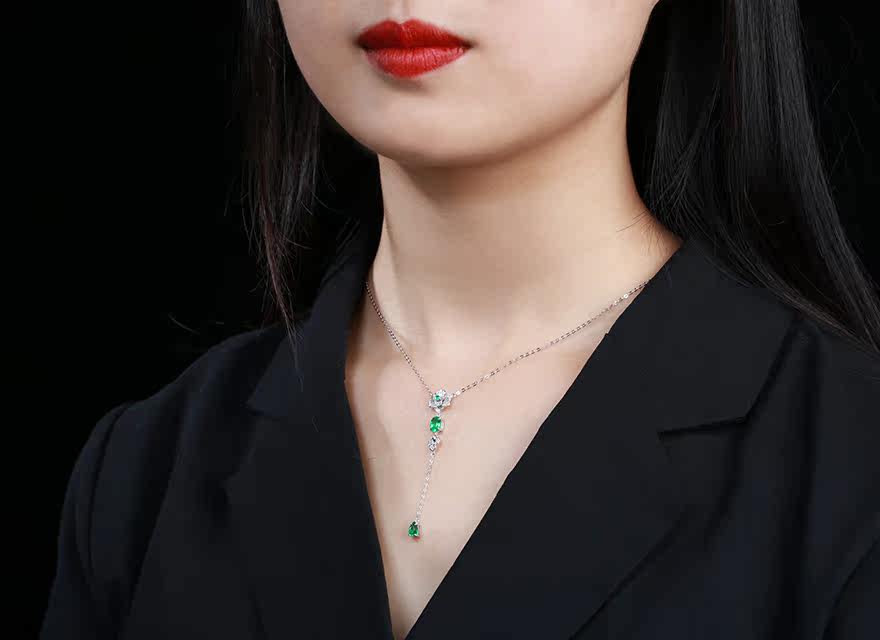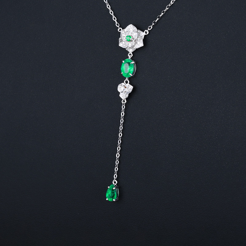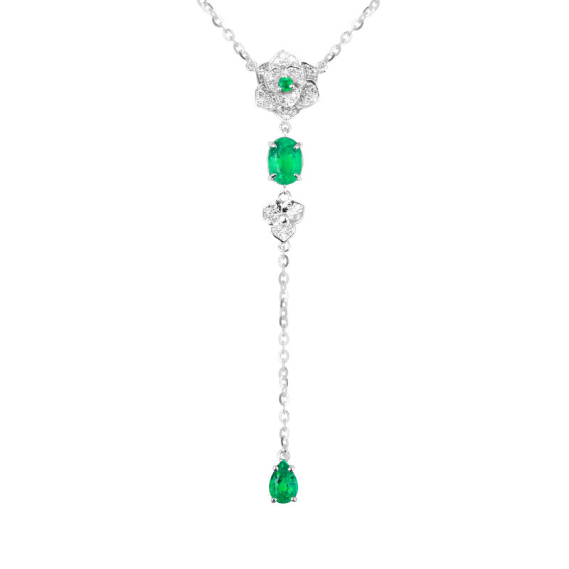 意禄 Ювелирное украшение, подвеска изумруд, ожерелье, бриллиантовая инкрустация камня, цепочка до ключиц, 0.93 карат, золото 750 пробы
